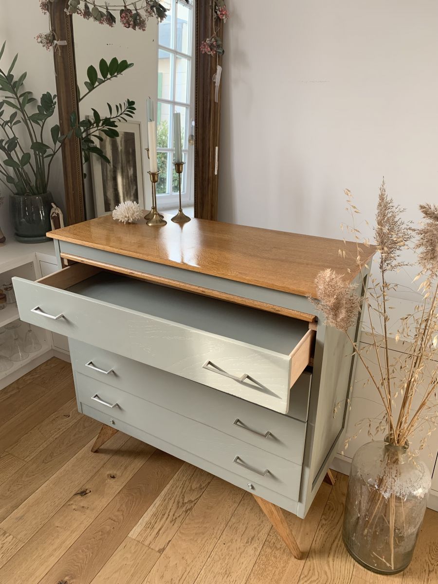 Belles poignées d’origine, les tiroirs coulissent parfaitement.