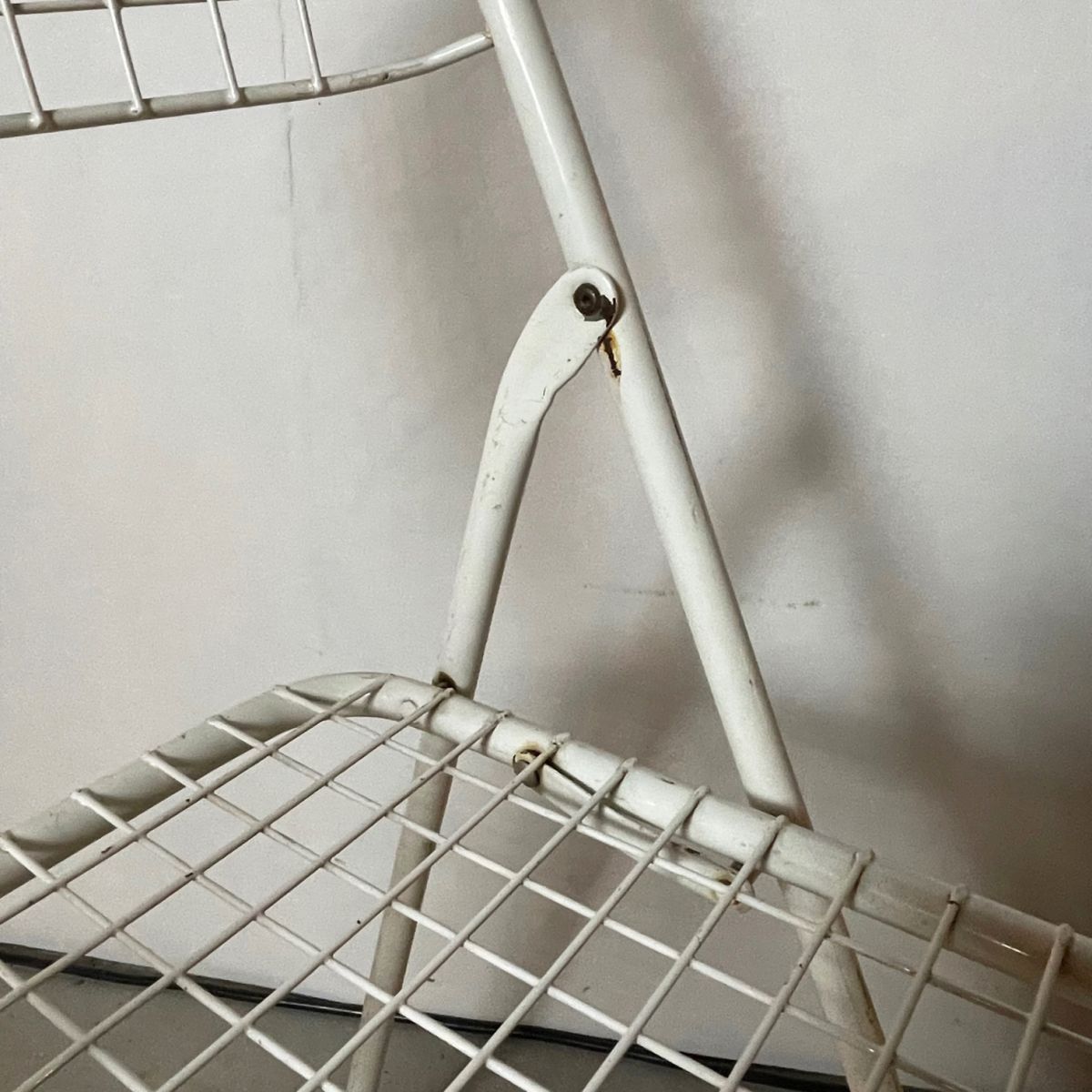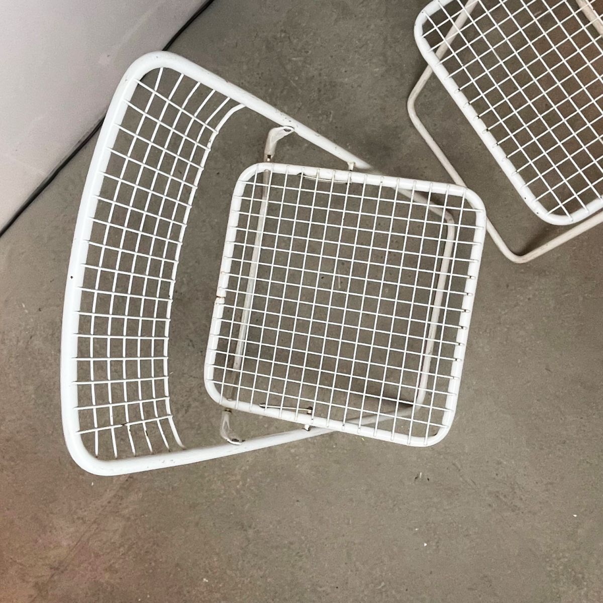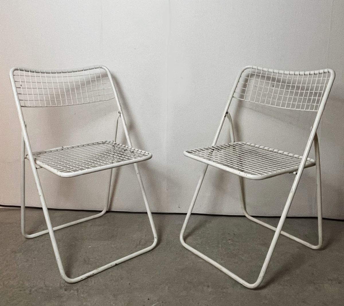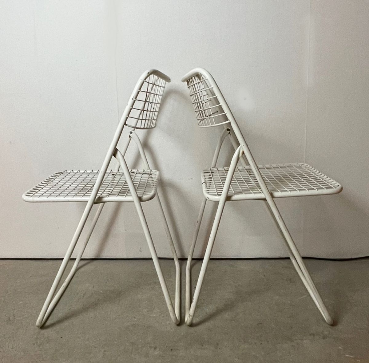 Paire de chaises pliantes en métal conçues par Niels Gammelgaard pour Ikea dans les années 70. Légères et de faible encombrement lorsqu'elles sont pliées. Quelques traces sur la peinture blanche à voir sur les photos.