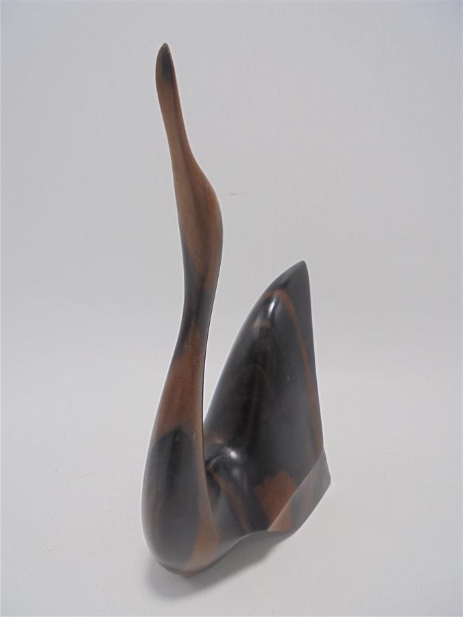 Cygne en bois, effet marbré avec 2 teintes de bois.