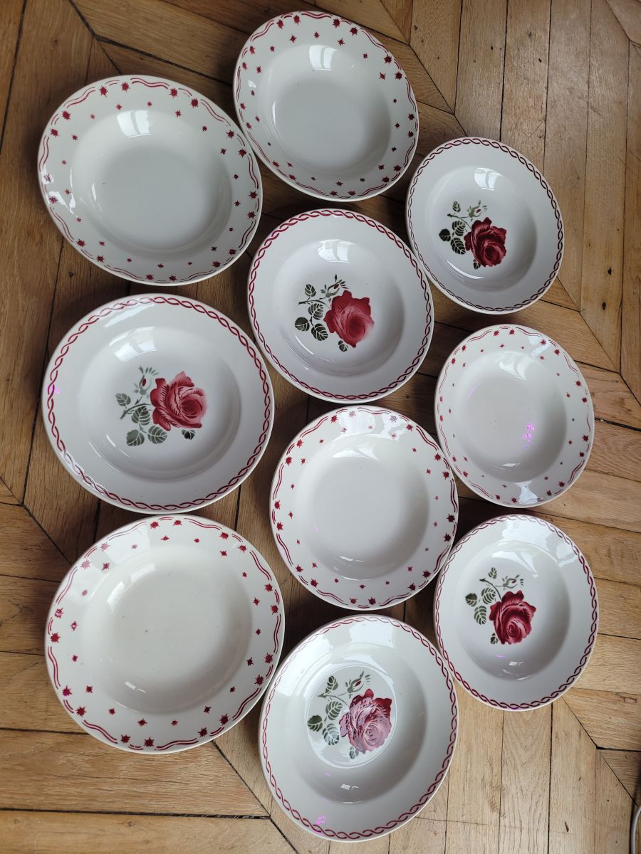 Assortiment de 10 assiettes creuses en faïence en porcelaine opaque