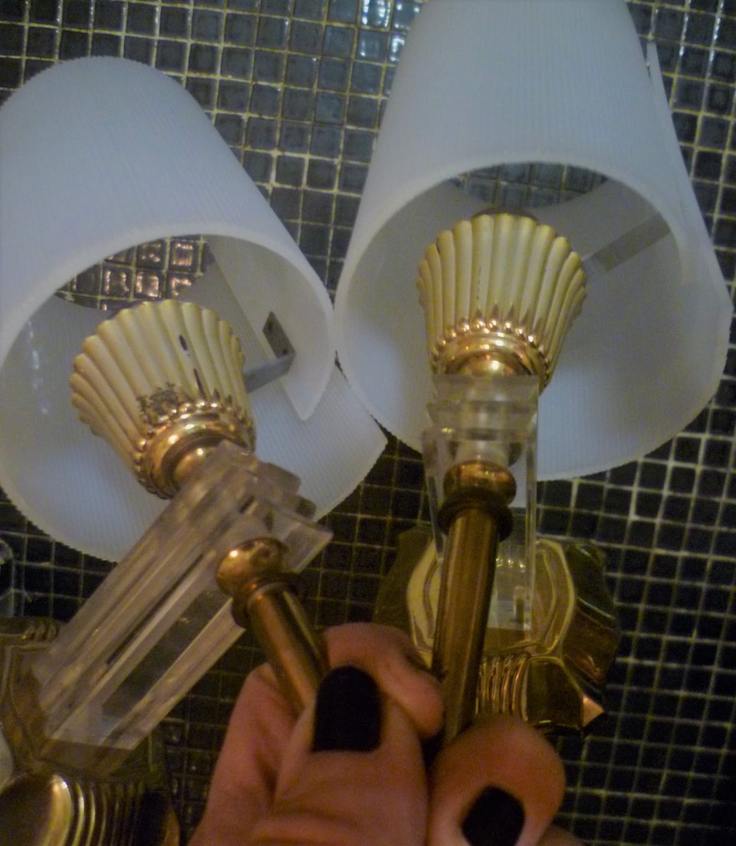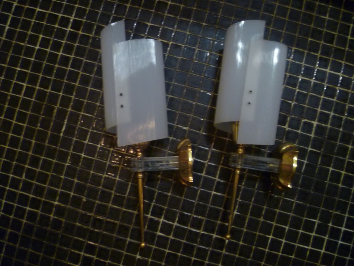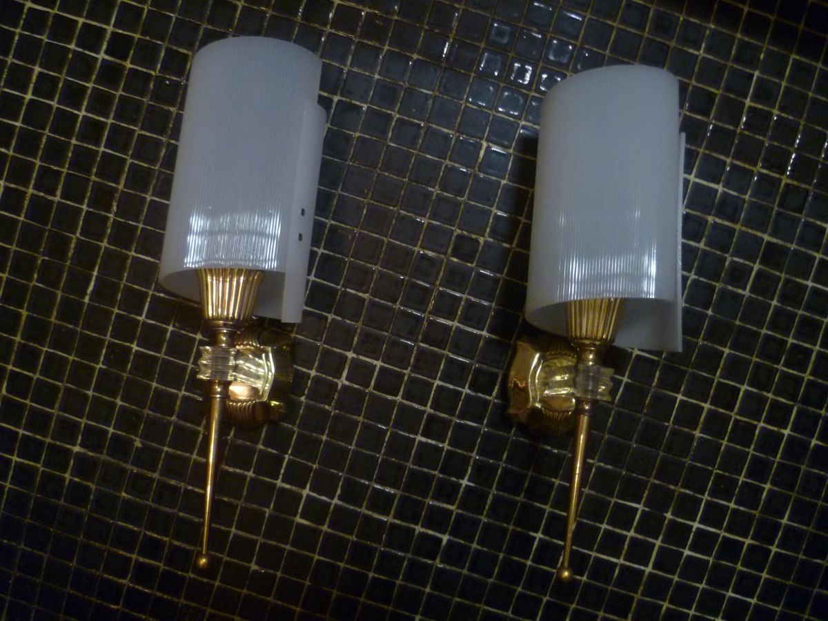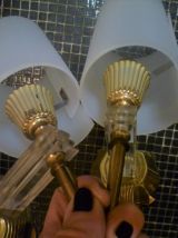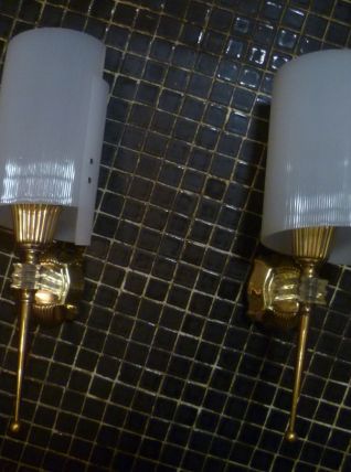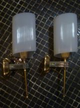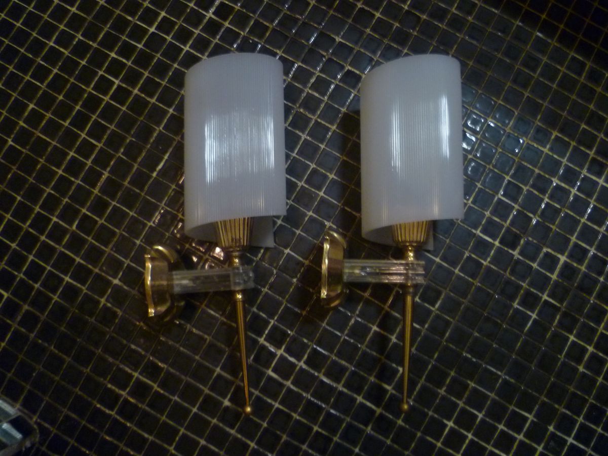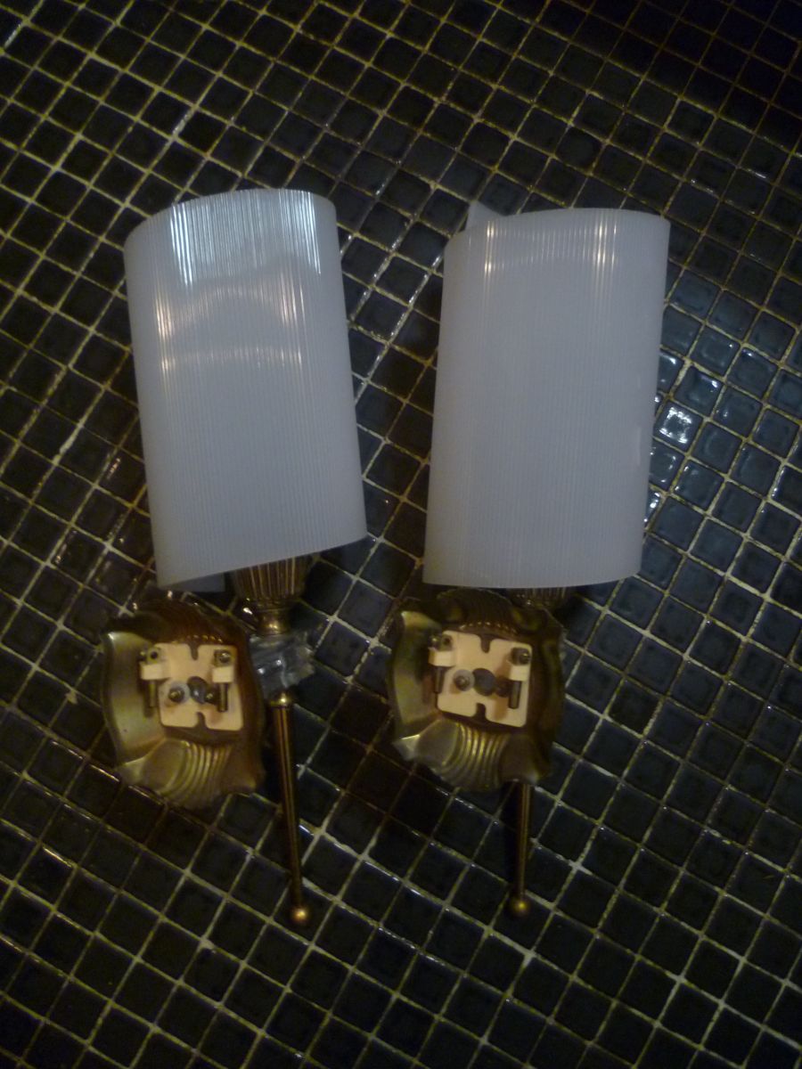 PAIRE D'APPLIQUES VINTAGE EN PLASTIQUE D'EPOQUE et laiton CO