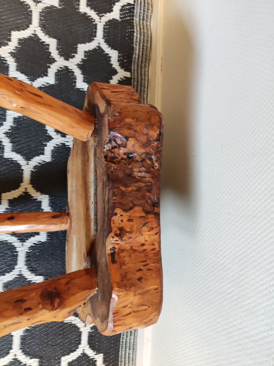 grand tabouret de campagne brutaliste en bois massif de fabrication artisanale