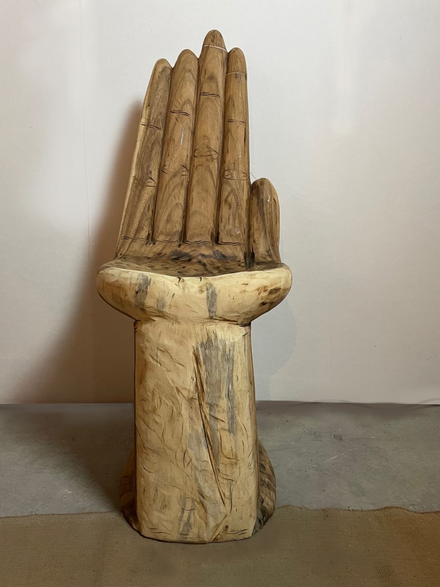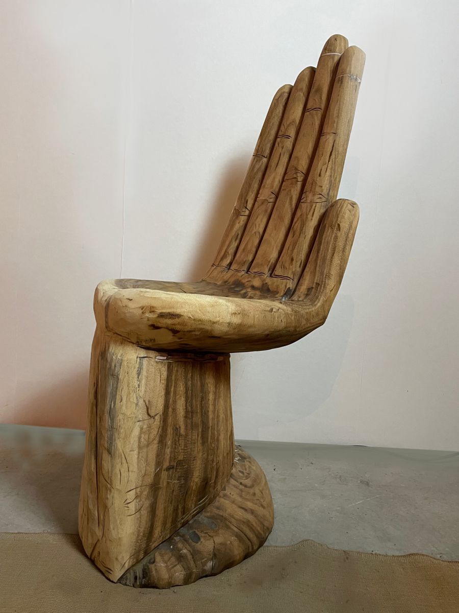 Chaise en bois exotique dans le goût de Pedro Friedeberg, décalée et surréaliste, elle est curieusement plutôt confortable ! Sa hauteur totale est d'1 m 07, la hauteur de l'assise est de 50 cm, sa profondeur de 31 cm, sa largeur de 42 cm. LIVRAISON PARIS POSSIBLE, NOUS CONSULTER