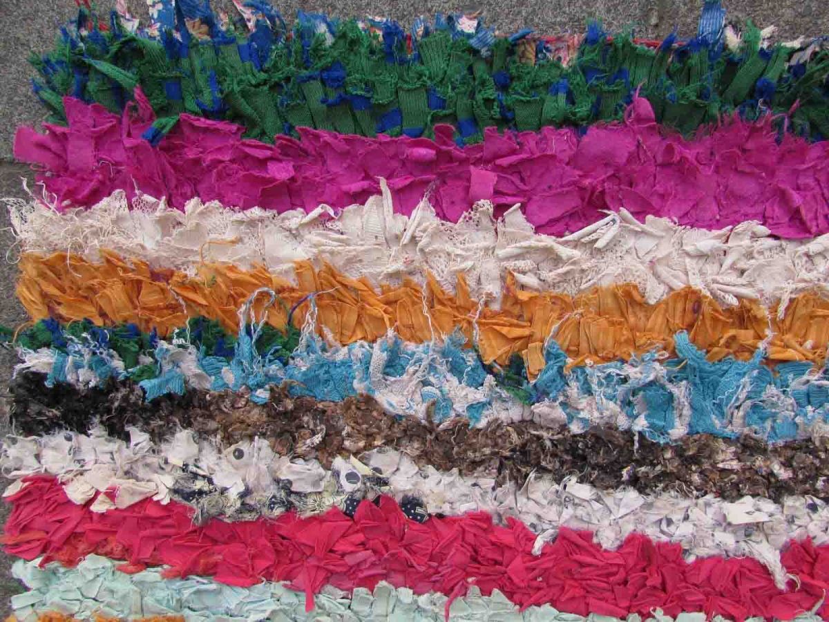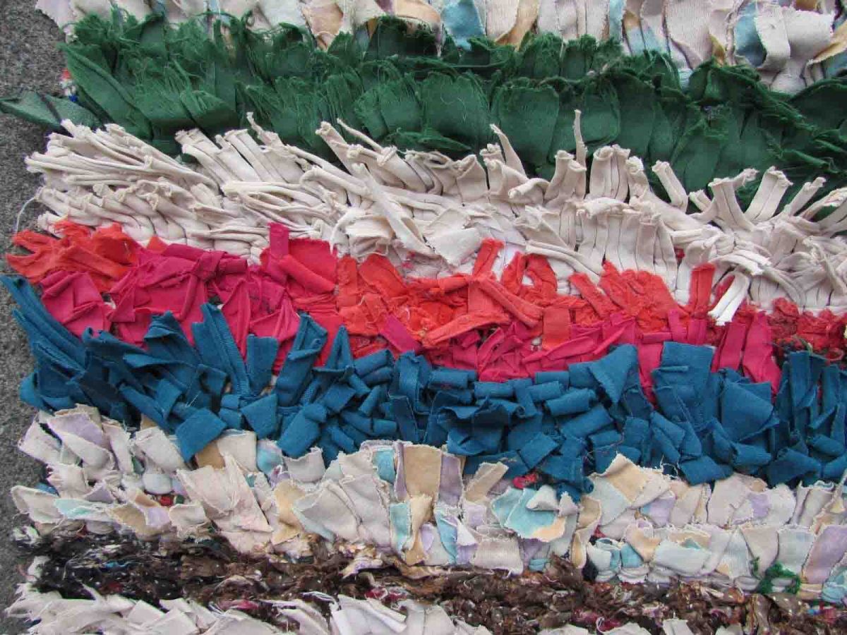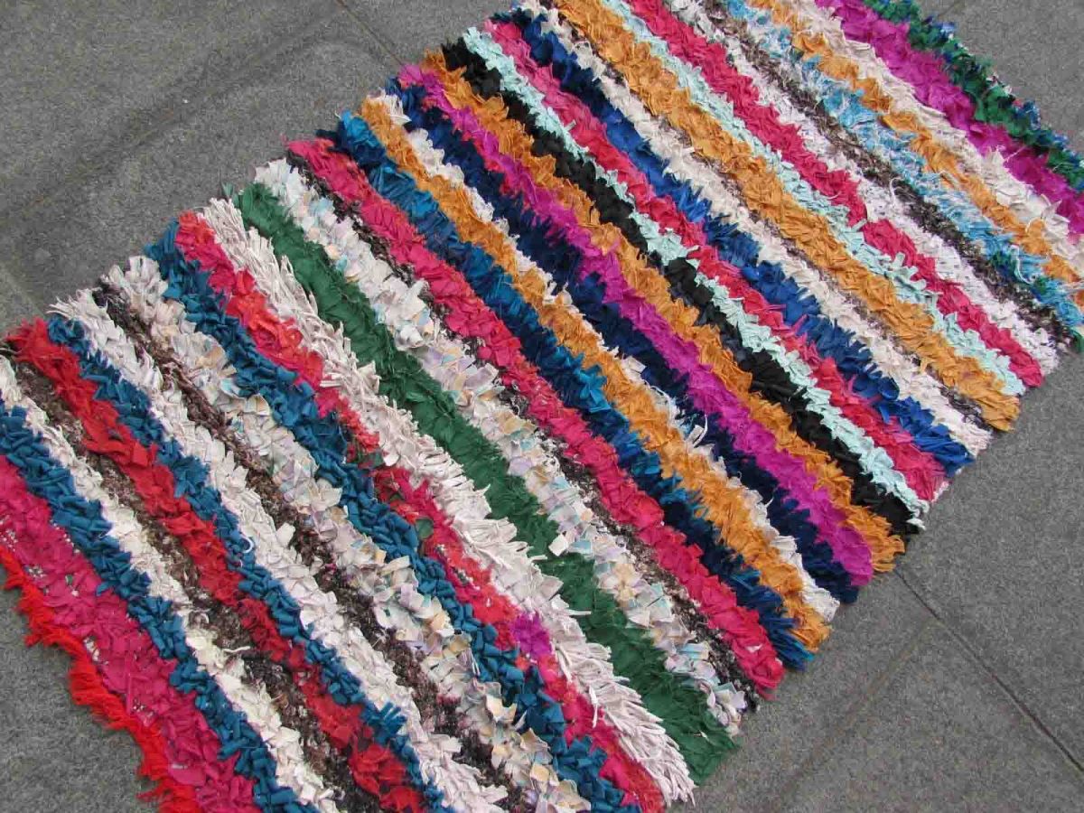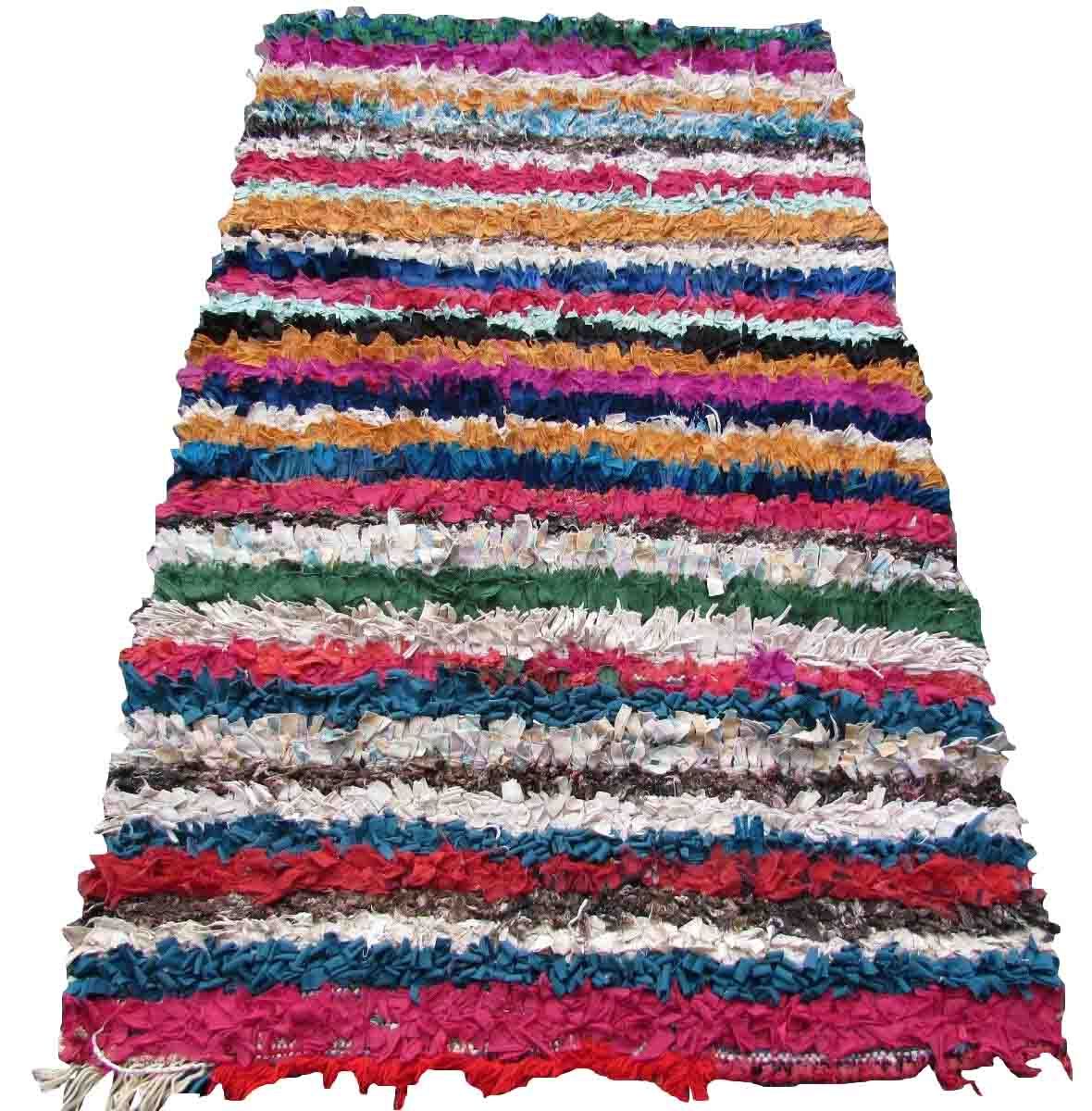 Handmade vintage Moroccan Boucherouite rug made in colorful cotton fabric stripes. The rug is from the end of 20th century in original good condition.