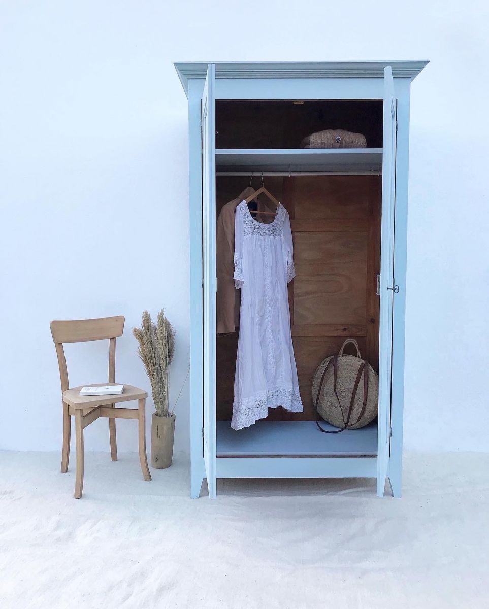 L’intérieur est aménagé d’une étagère en haut et une penderie. Avec son format pratique, elle se glissera facilement dans n’importe quelle chambre.