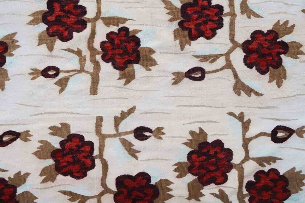 Handmade vintage Bessarabian kilim from Romania in decorative design. Vegetable dyes, the rug is in original good condition, made in the middle of 20th century