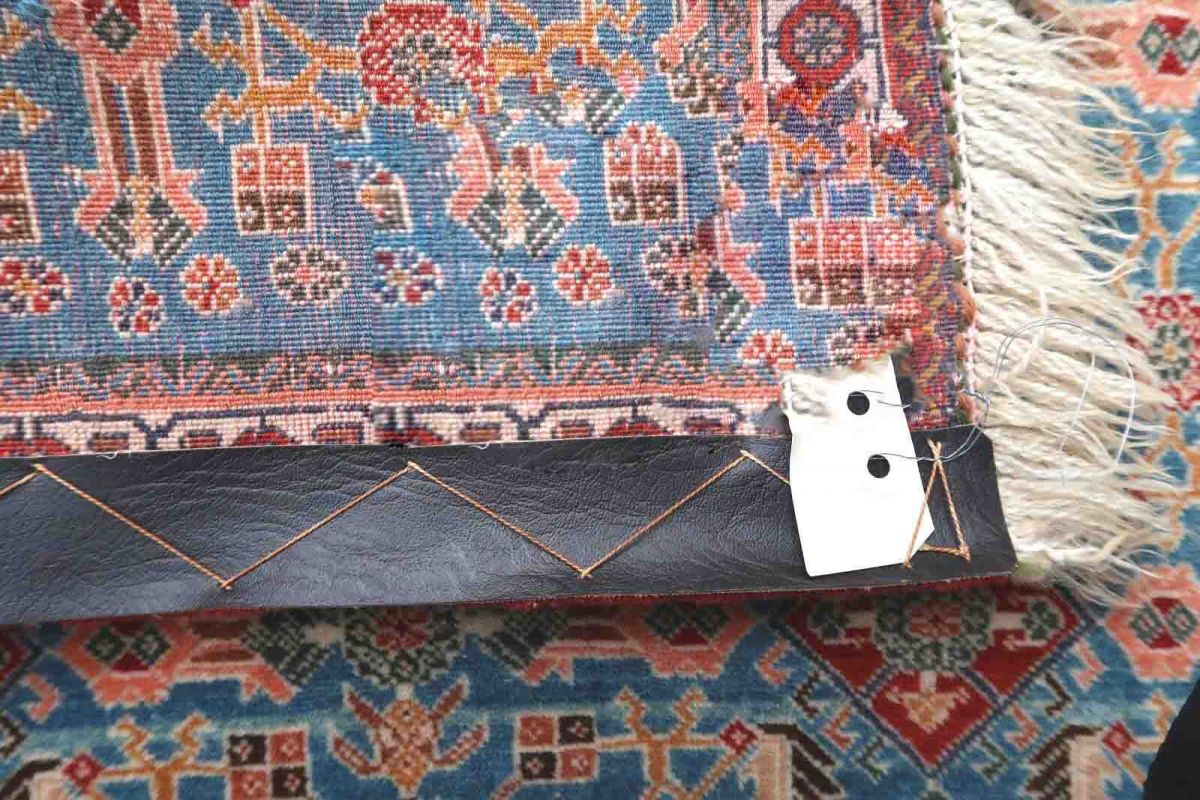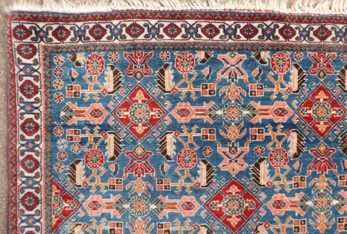 Handmade vintage Persian Malayer rug in unusual sky blue color. The rug is from the end of 20th century in original good condition.