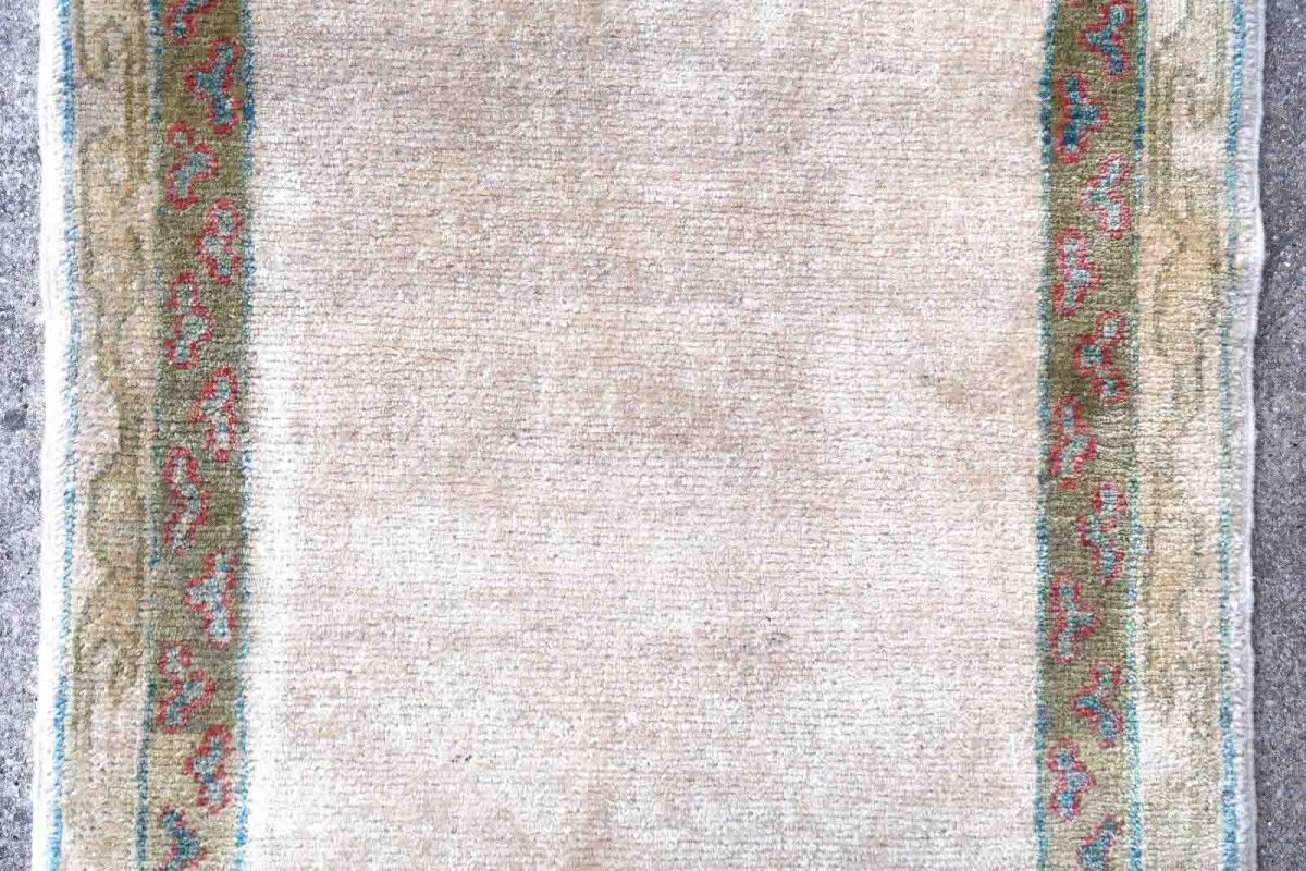 Handmade vintage Turkish runner from Sivas region in beige color. The rug is in original good condition, from the end of 20th century.