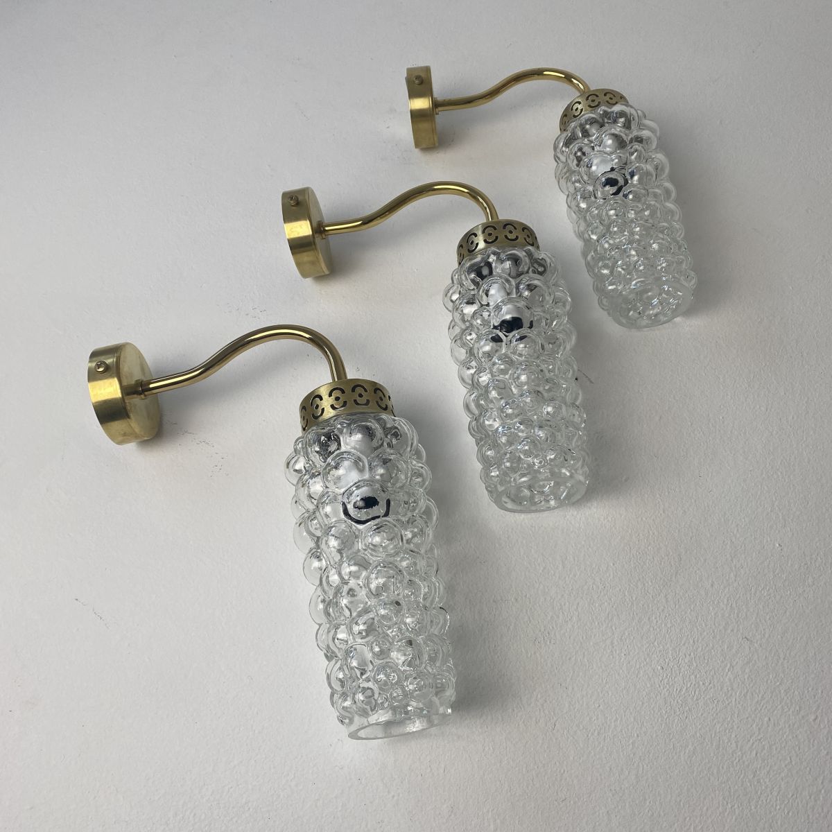 Lot de 3 belles appliques col de cygne et verre vintage. En bel état. Lumière diffuse.