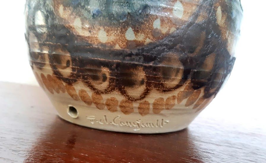 Jean-Claude COURJAULT (né en 1940) est un artiste céramiste ayant étudié aux Beaux-Arts de Bourges où il se forme auprès du duo Jacqueline et Jean Lerat . Il participe ensuite à l'aventure de Keraluc à Quimper après avoir collaboré avec la faïencerie bretonne, il ouvre son propre atelier à la "Cerisaie" en 1975.