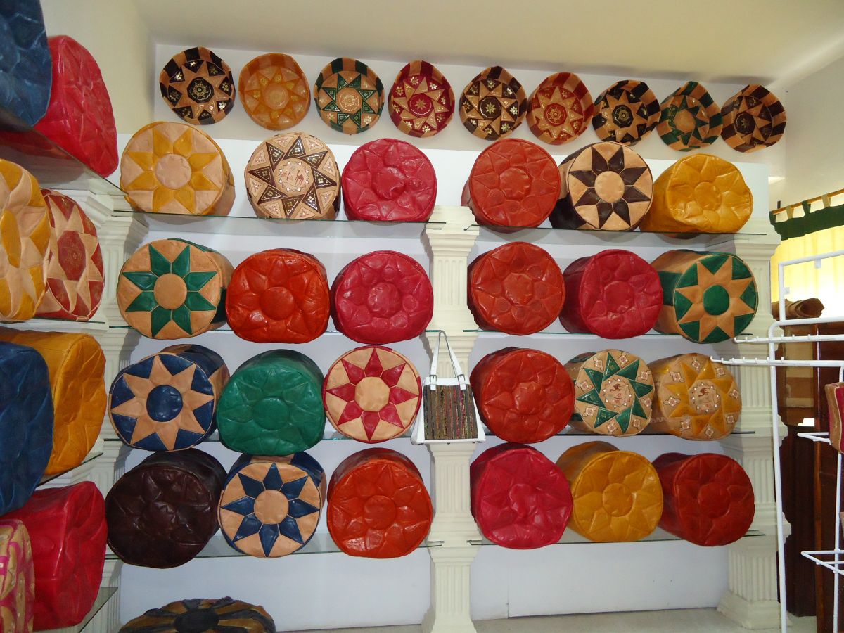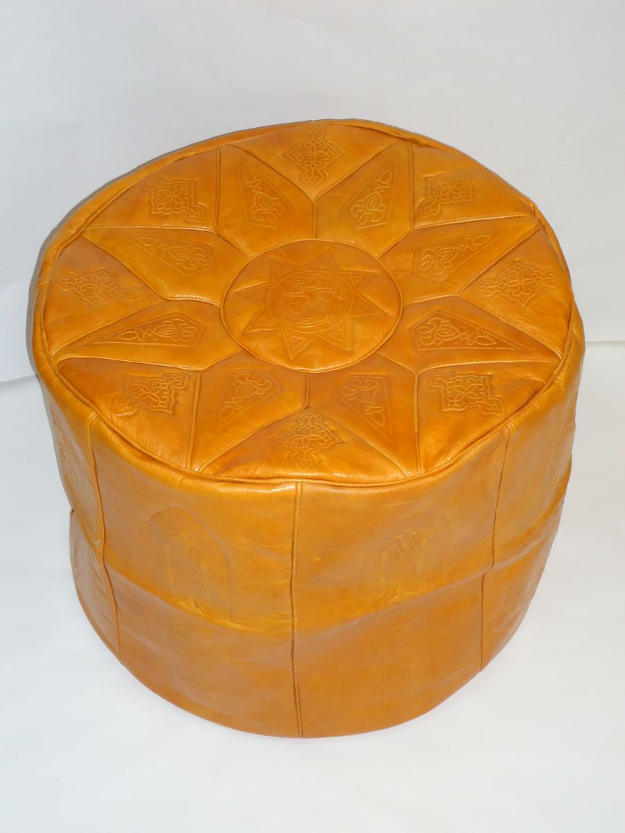 Déco marocaine, pouf cuir marocain, pouf moutarde, pouf moutarde, canapé moutarde, pouf cuir,