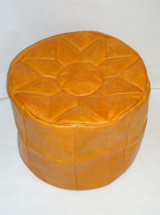 Pouf marocain jaune ottoman en cuire
