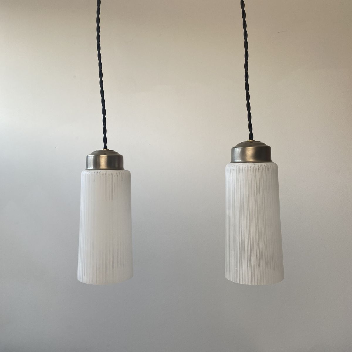 2 anciennes suspension tubulaires en verre. Vintage. Années 1960. En bel état général.