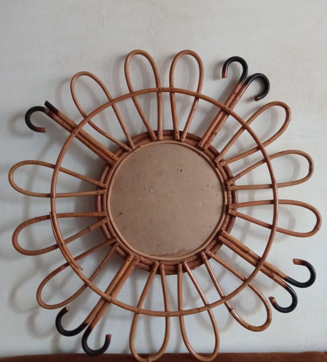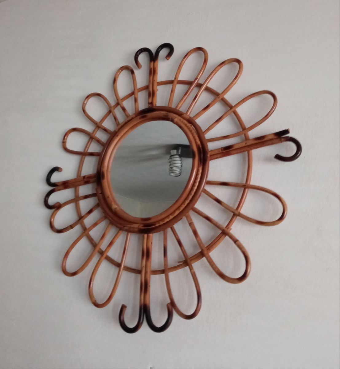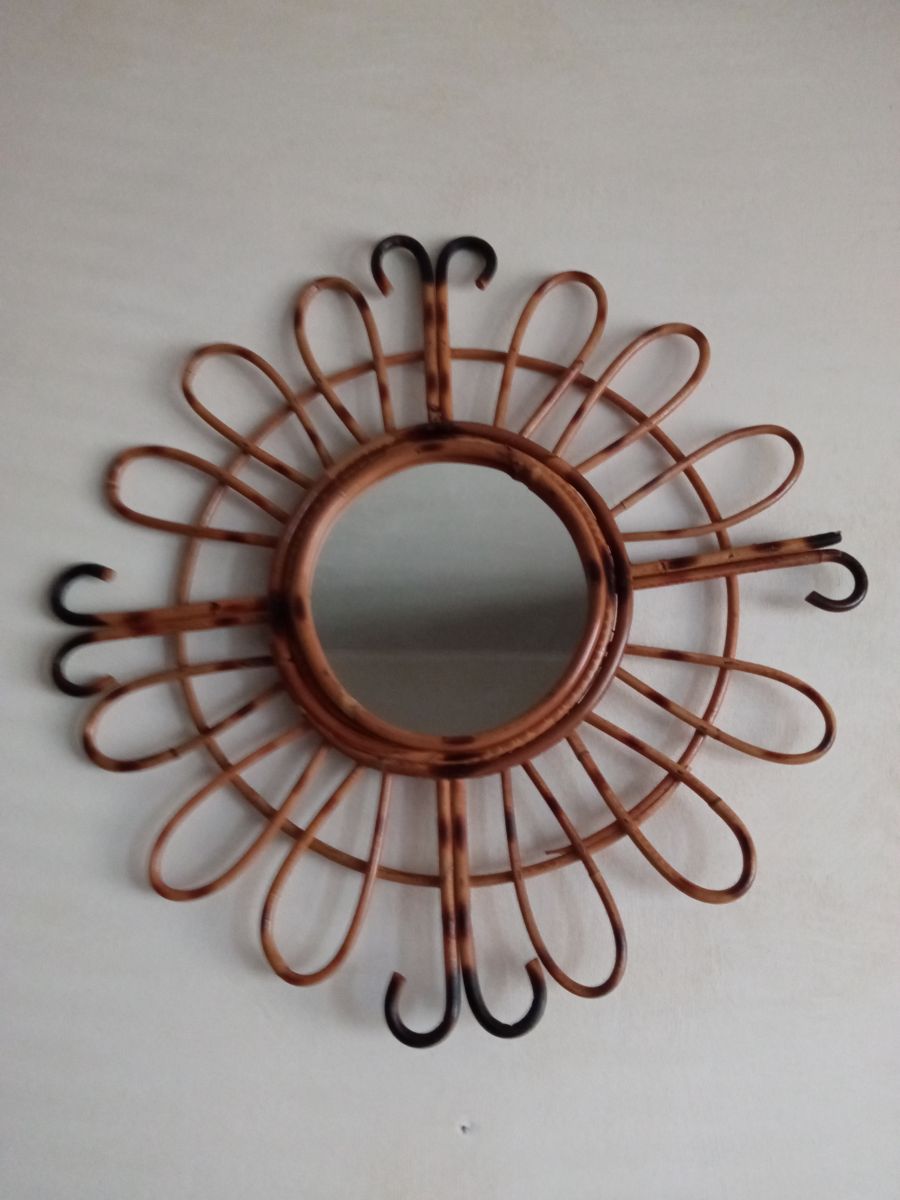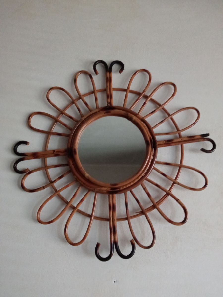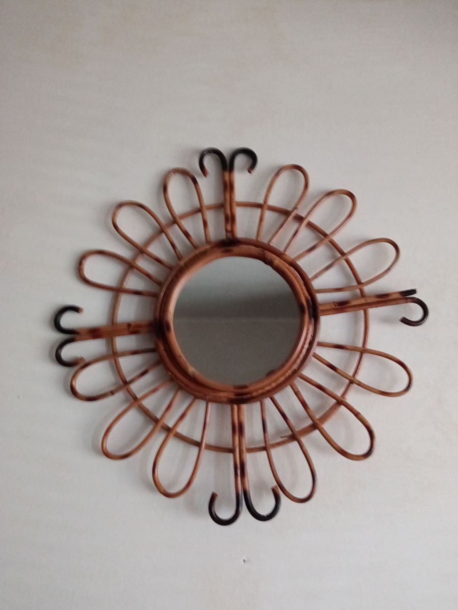 Marque : Miroir en bambou vintage. Lui manque un morceau, voir photos.