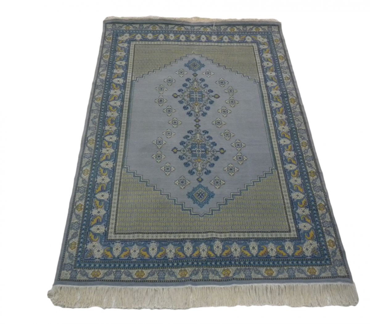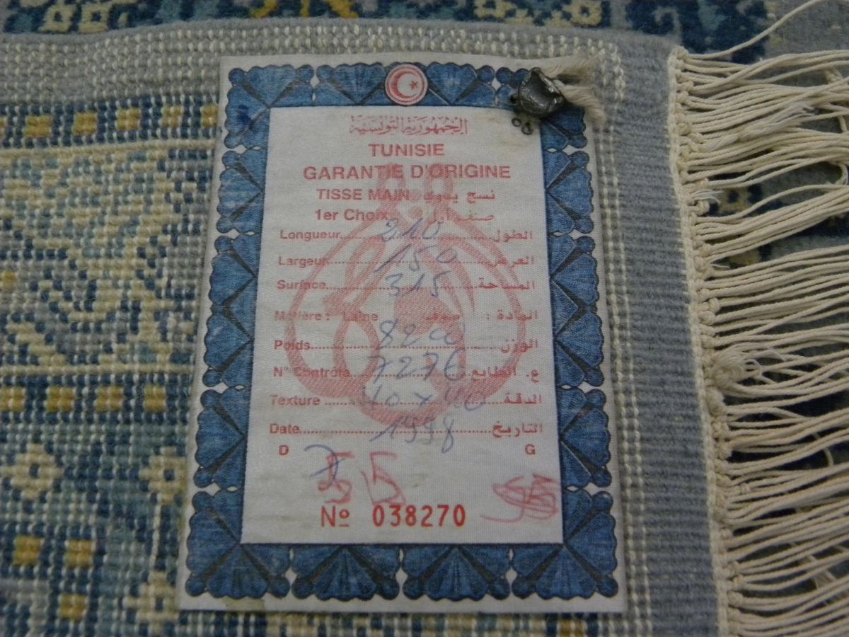 Vintage tapis oriental Tunisien bleu en laine tissé main
