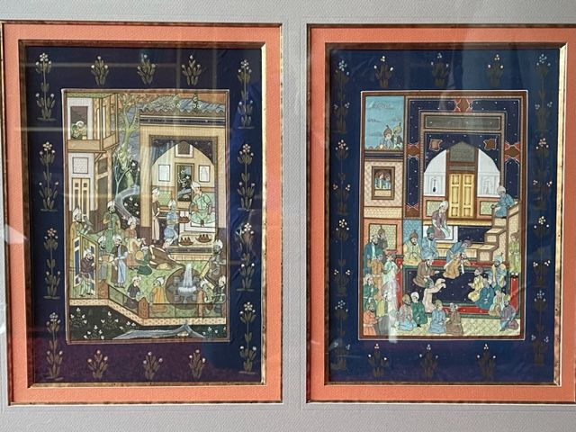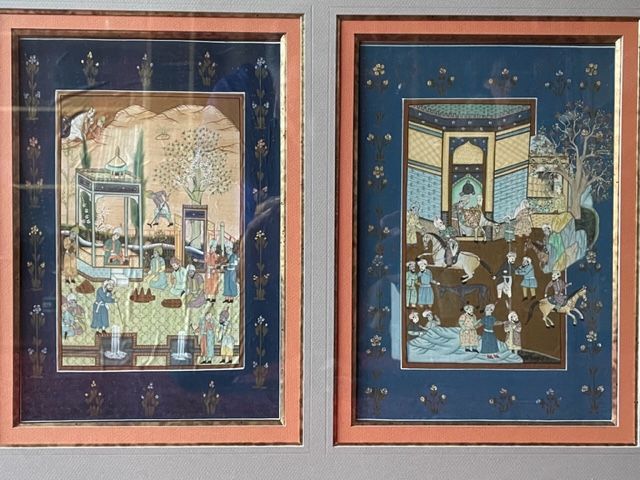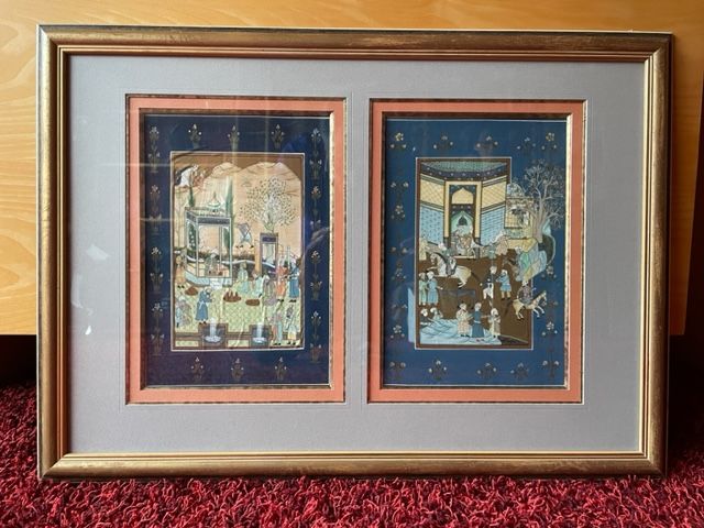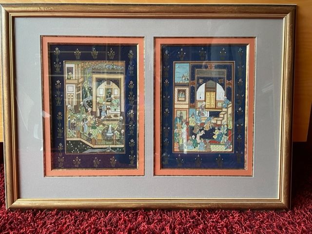 Très belles peintures sur soie représentant des scènes indiennes. Encadrements soignés réalisés par un professionnel. Dimension des cadres H 48 X L 67