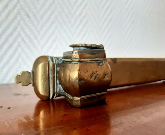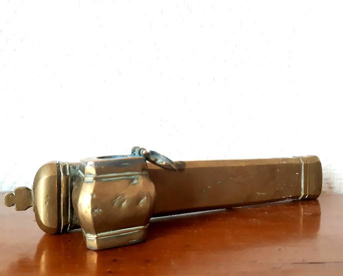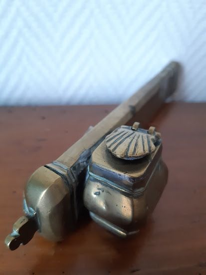 Ecritoire dit "divit" en laiton doré uni. Coquille pour refermer l'encrier.