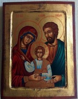 Nous vendons une très belle icône de la Sainte Famille, peinte à la main, fond or.