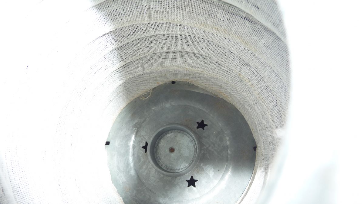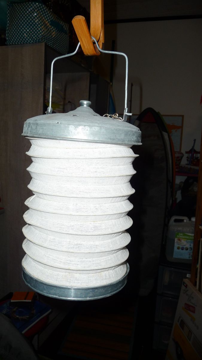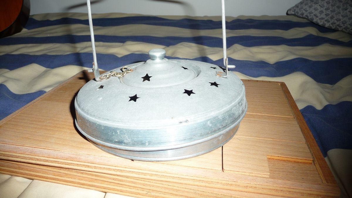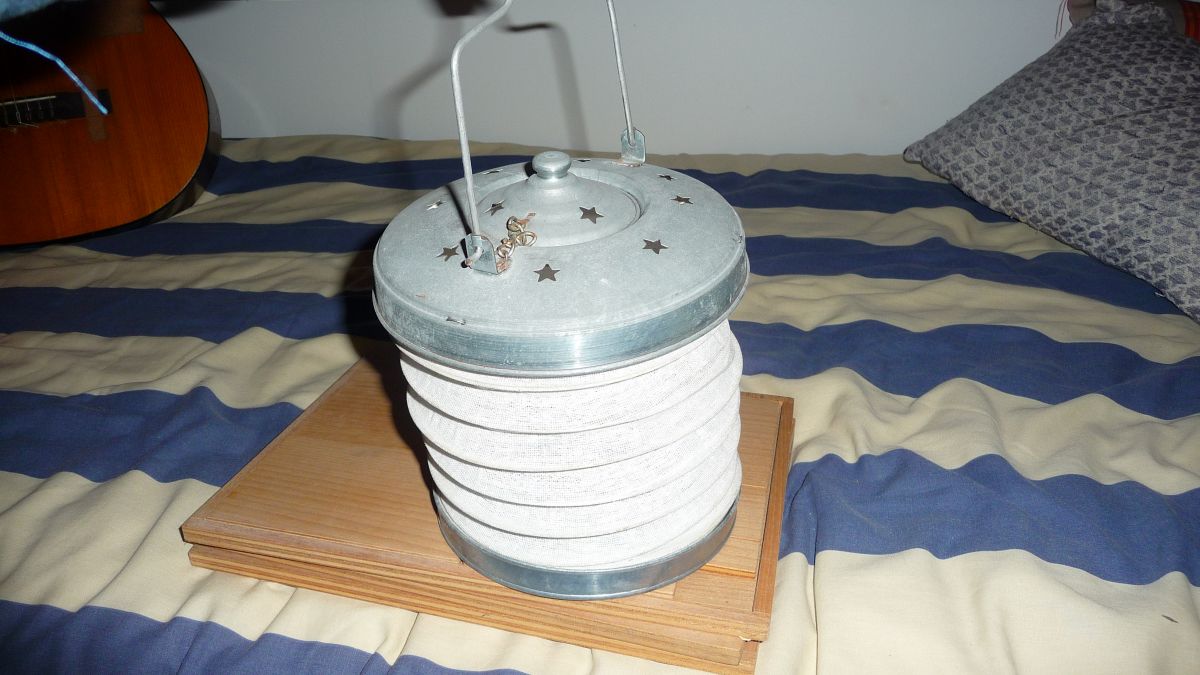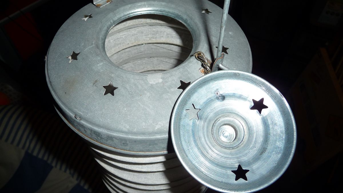 Lampion en tissu et zinc, pliable, a garnir d'une bougie genre chauffe plat.