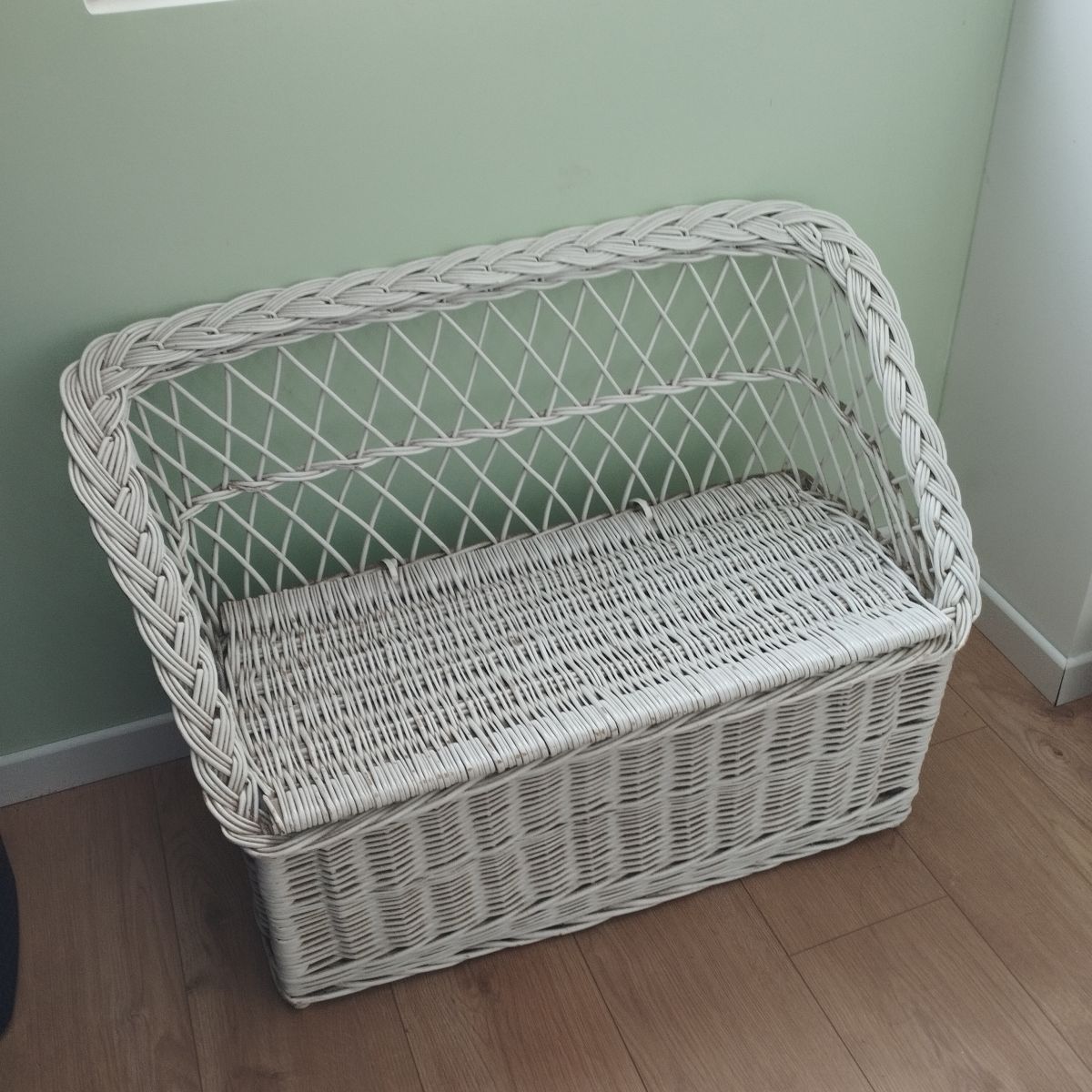 Vend fauteuil deux places enfants en rotin de très bon facture avec coffre de rangement.