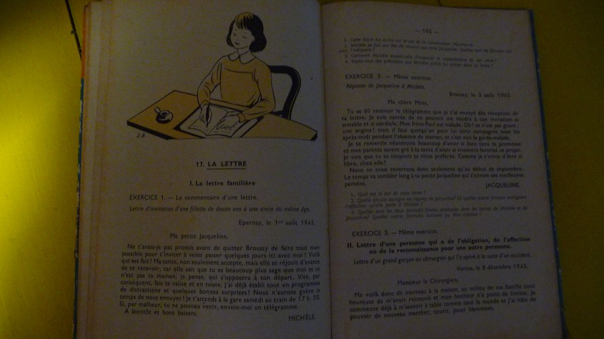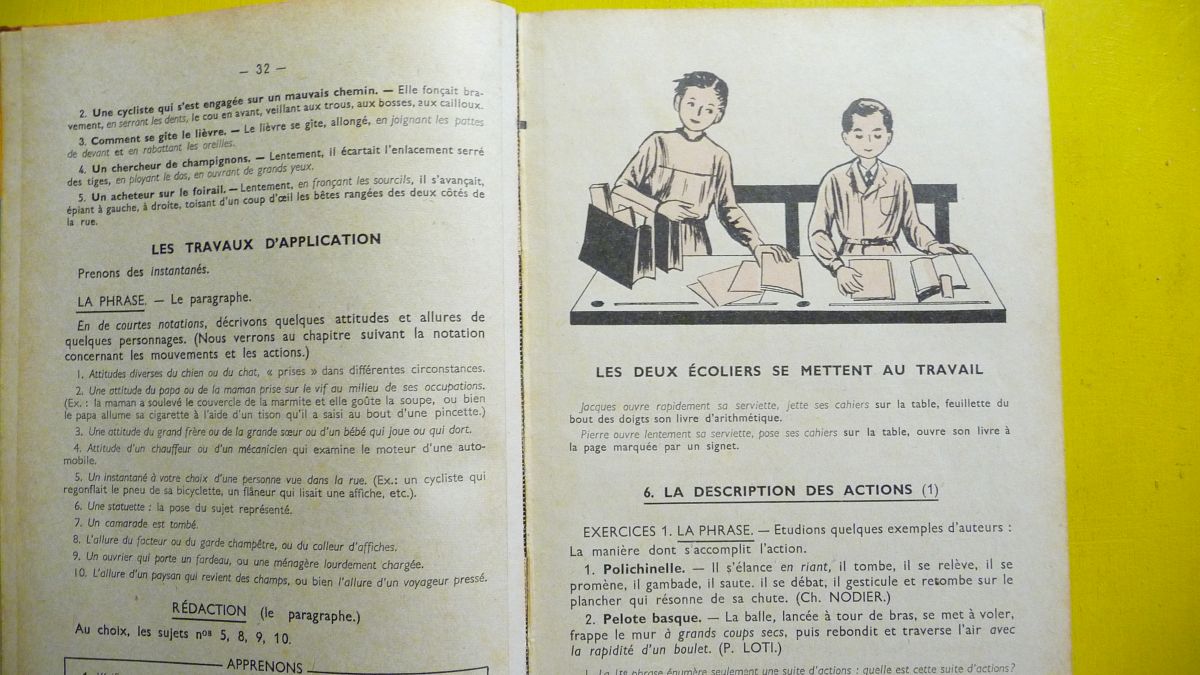 Exercices de vocabulaire, construction de phrases, sujets de rédaction (le livre du maître contenait les corrigés).