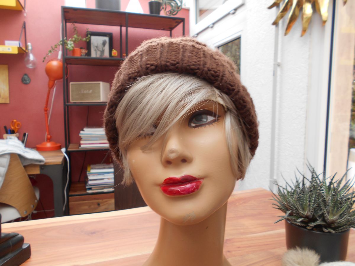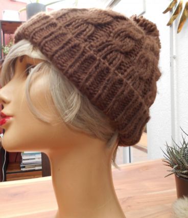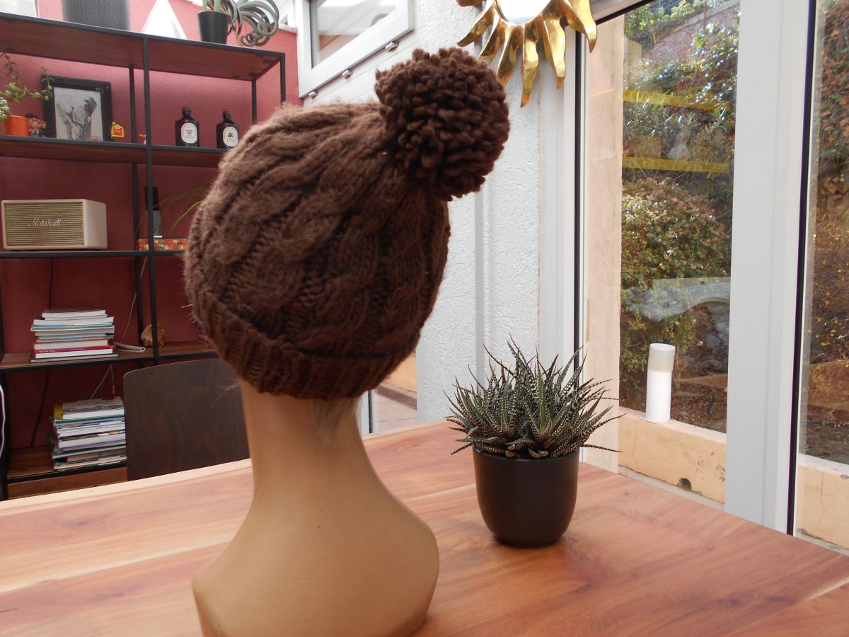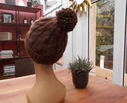 TRES BEAU BONNET MARRON VINTAGE AVEC SON GROS POMPON