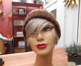 BONNET MARRON VINTAGE ANNEE 60 QUASI NEUF AVEC SON POMPON
