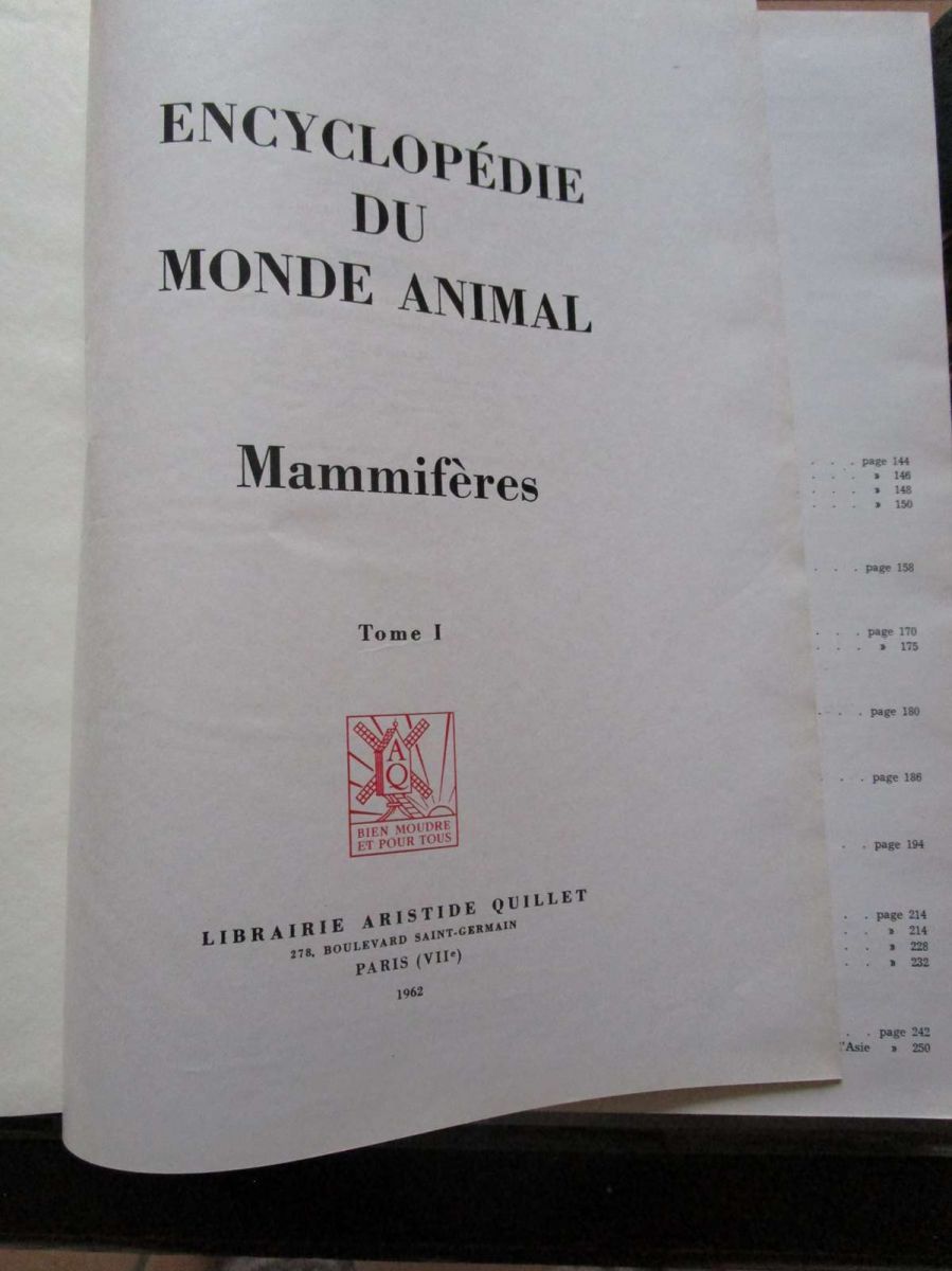 Librairie Aristide Quillet - Paris 1962 Tome 1 : les mammifères - Tome 2 : oiseaux, reptiles, amphibiens -Tome 3 : poissons, invertébrés. Nombreuses illustrations, photos, dessins.