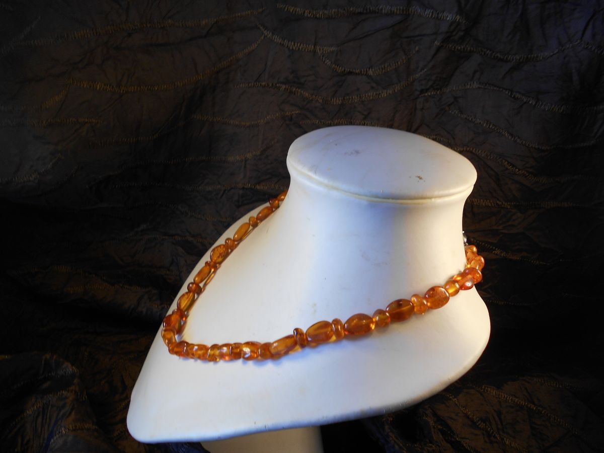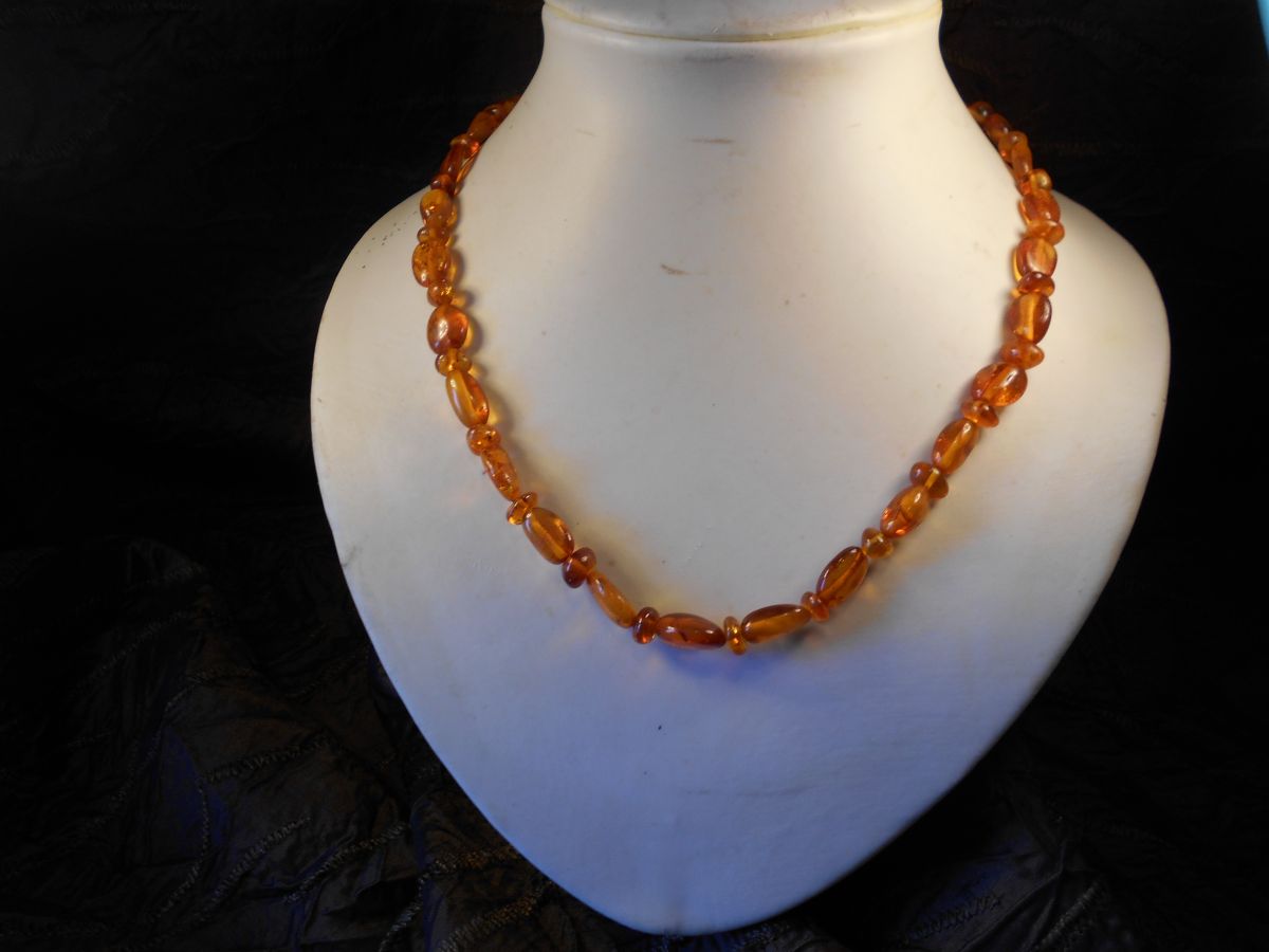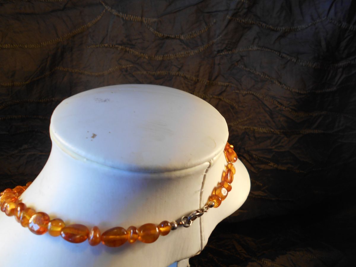 tres beau collier ambre de la baltique ambre marron fermeture argent neuf 25 CM