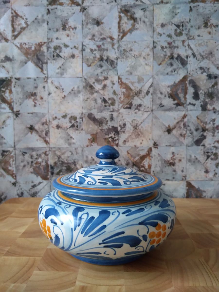 Boite céramique Italienne type bonbonnière bleue et jaune