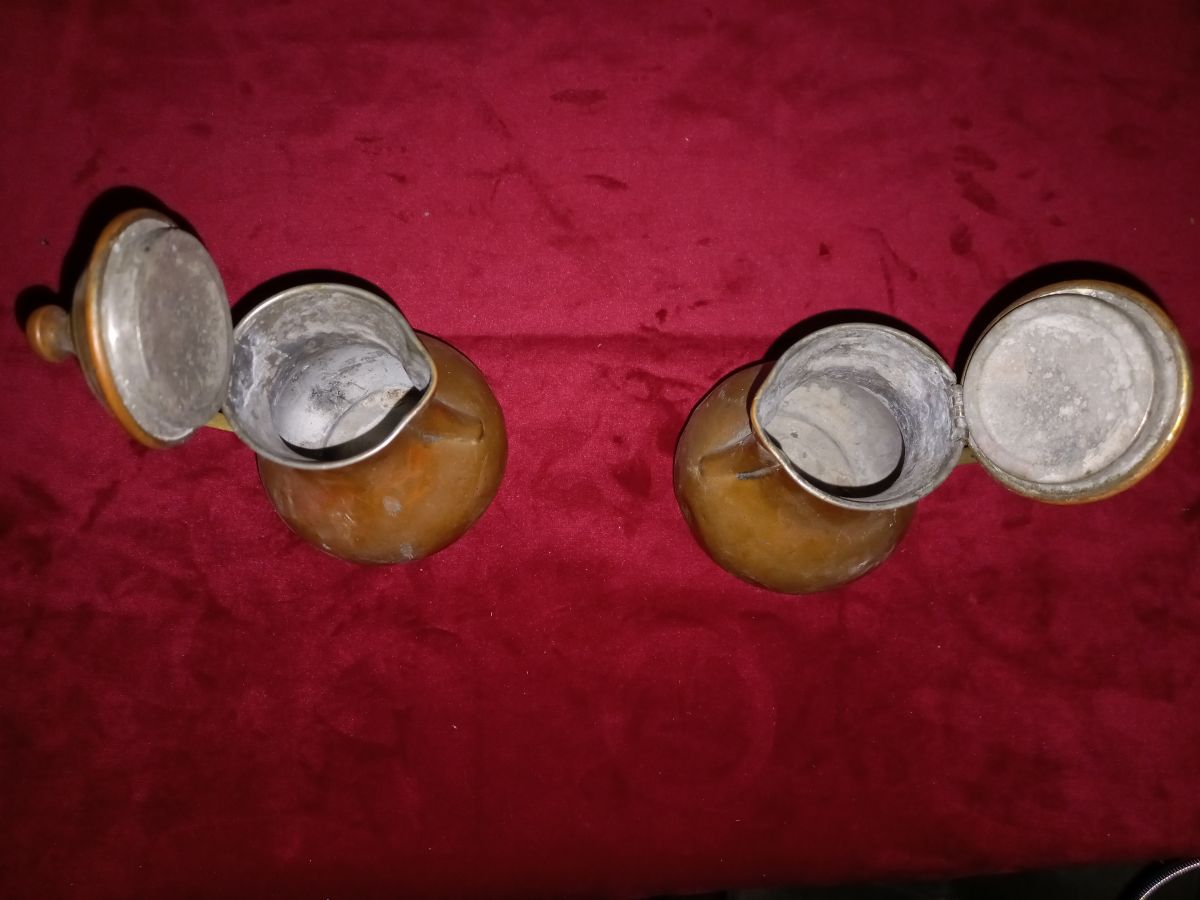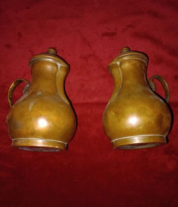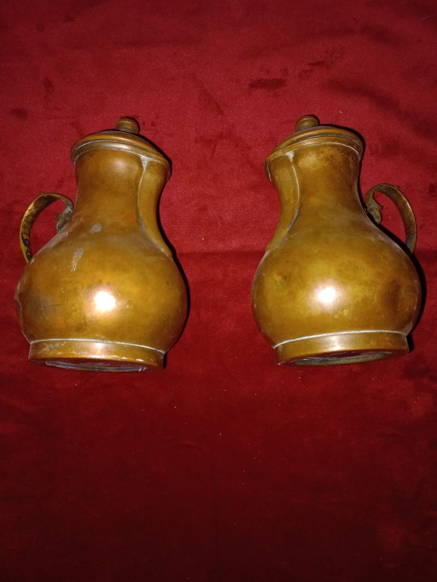 ils sont en cuivres et en laitons ... ( patiné , libre à l'acheteur de les briquer ... )