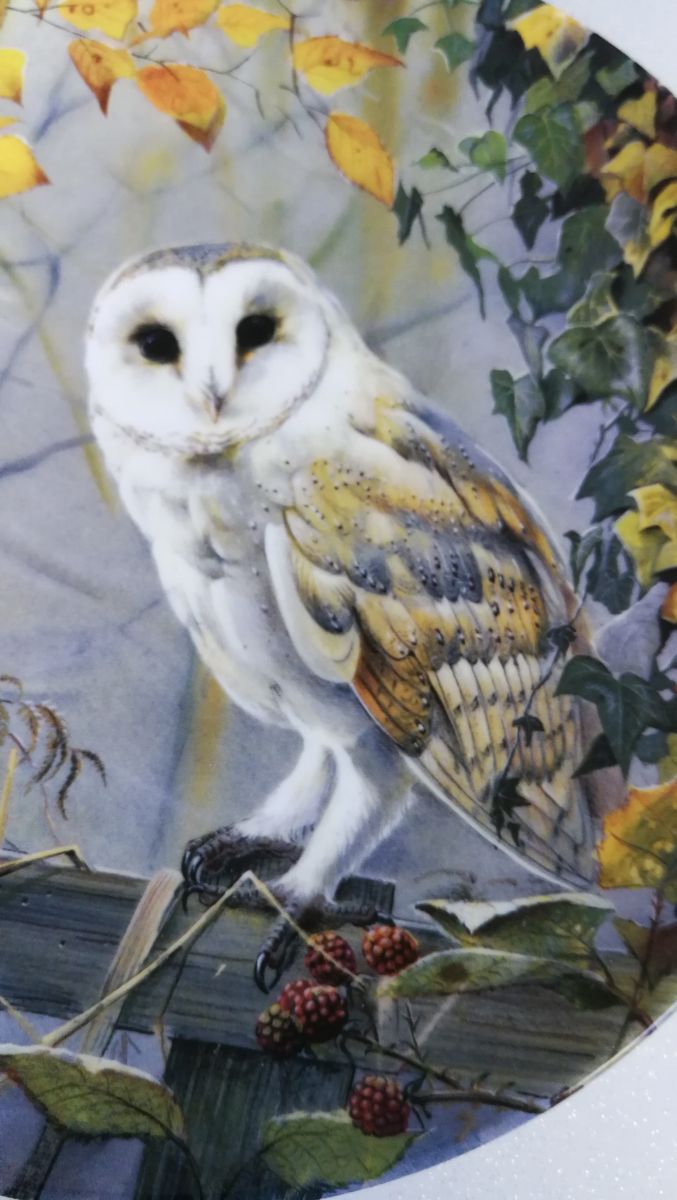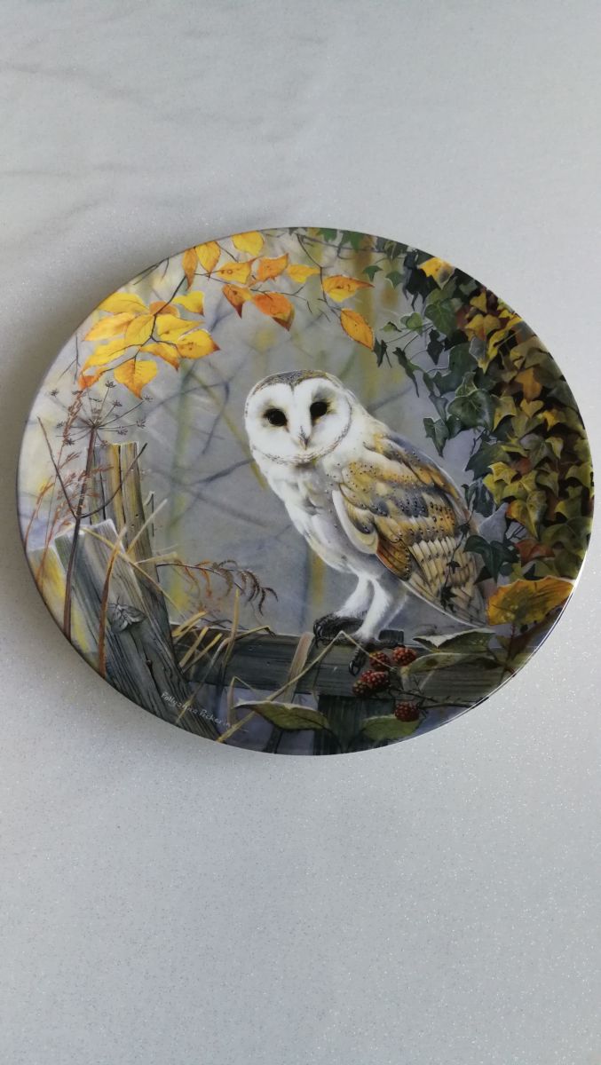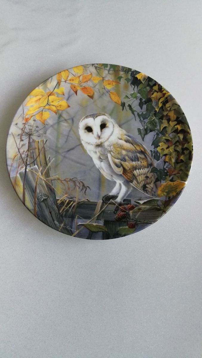 Assiette '' Un Moment Tranquille '' représentant une chouette poser sur une barrière. By Pollyanna Pickering, edition limiter.