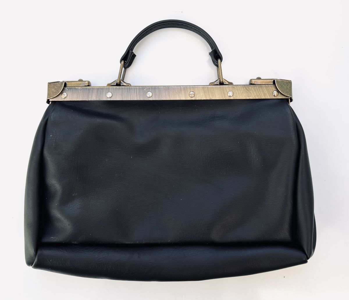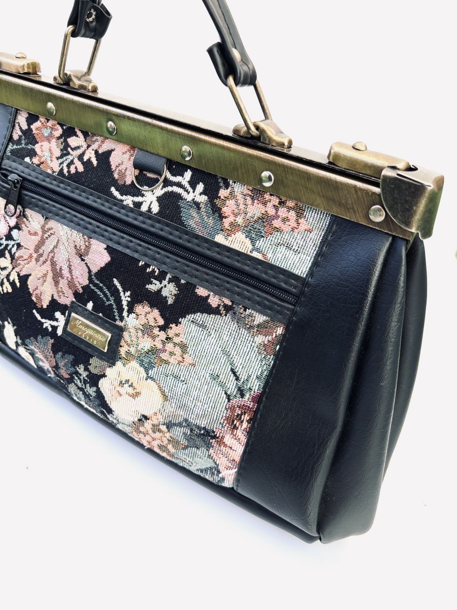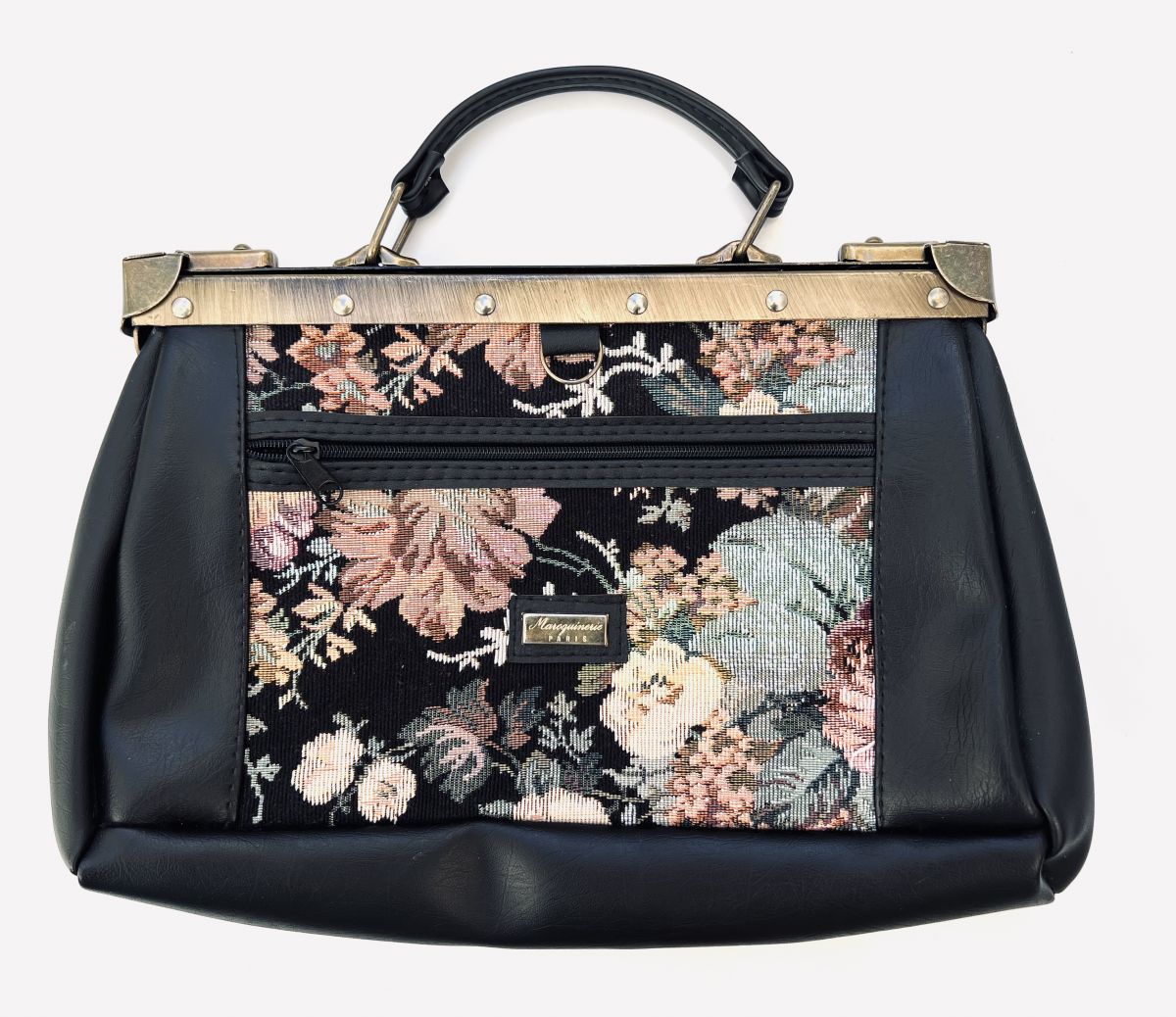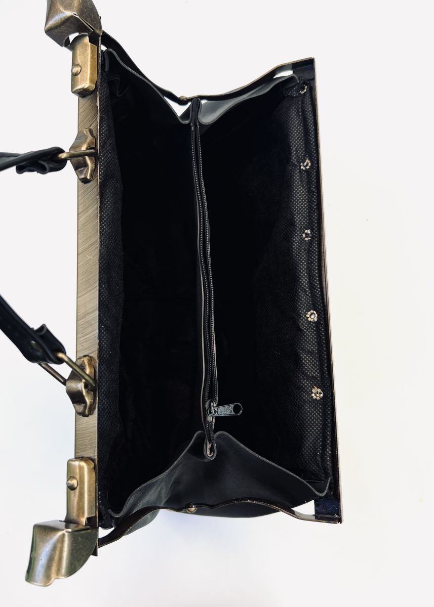 Sac vintage en cuir avec tapisserie devant , avec fermeture en laiton
