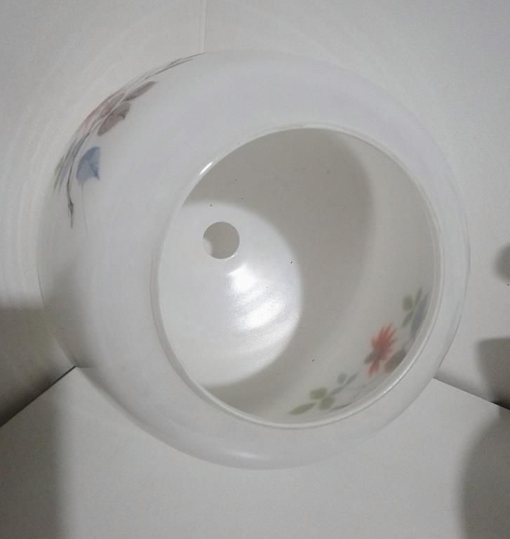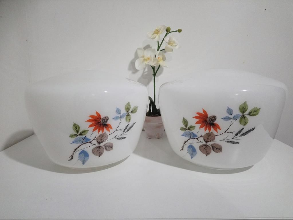 Lot de 2 globes de luminaires vintage en opaline blanche, décors feuillage
