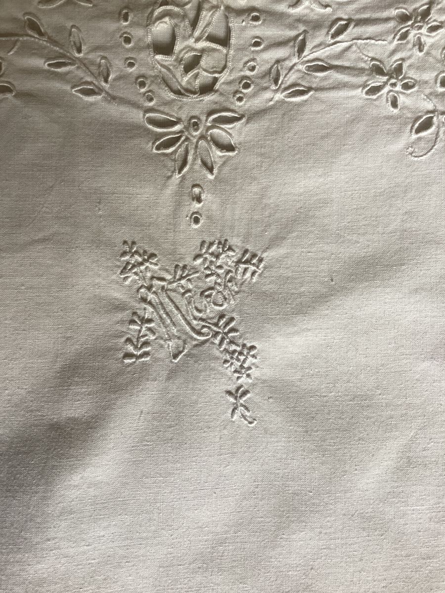 Chemise de grand mère vintage coton blanc haut de la chemise et les bretelles sont brodé main devant monogramme brodé MARIA