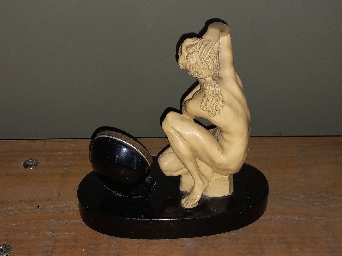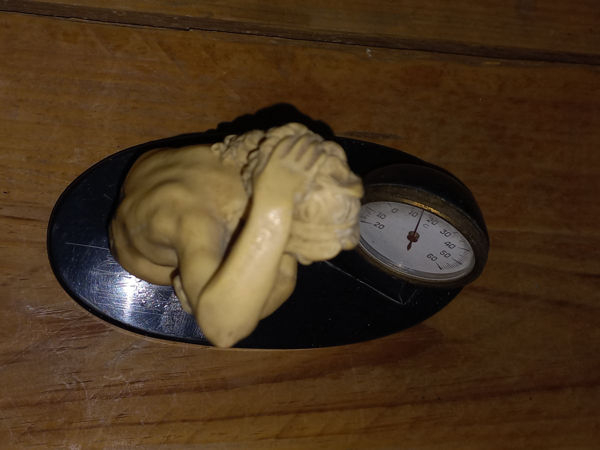 Sculpture Femme Nue En Résine avec un Thermomètre Sur Socle