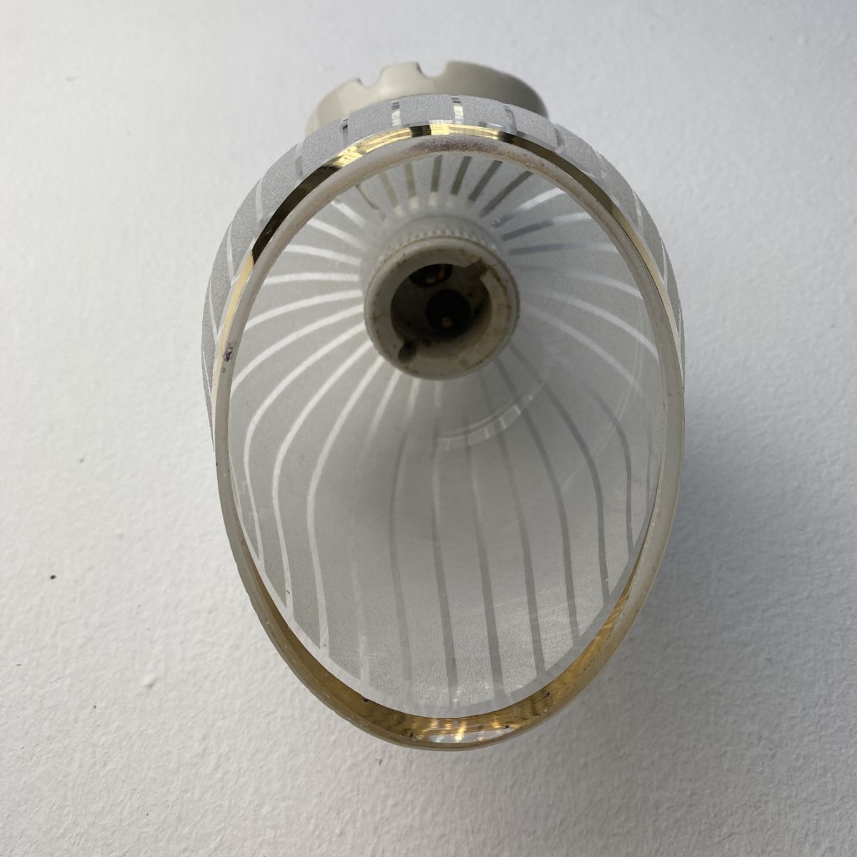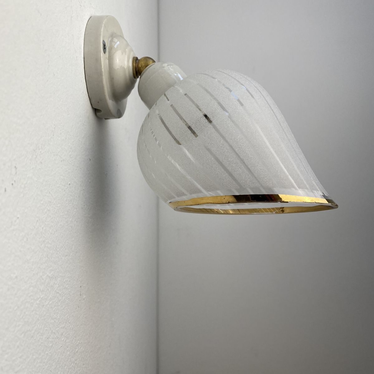 2 anciennes petites applique inclinées en verre des années 1950.. Base en porcelaine. Belle lumière.