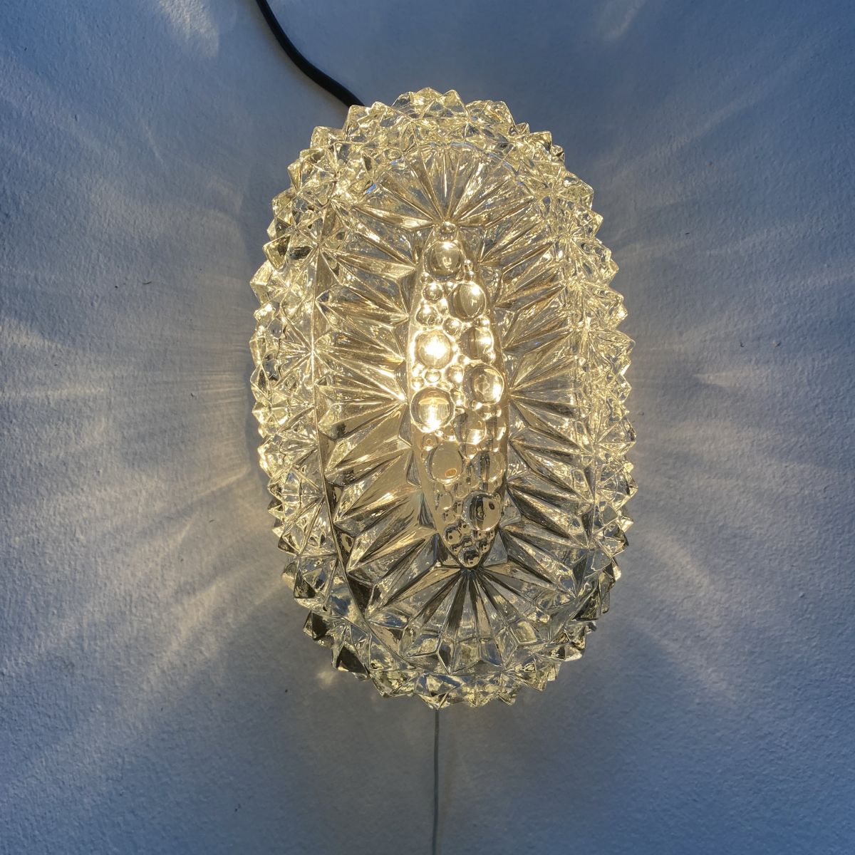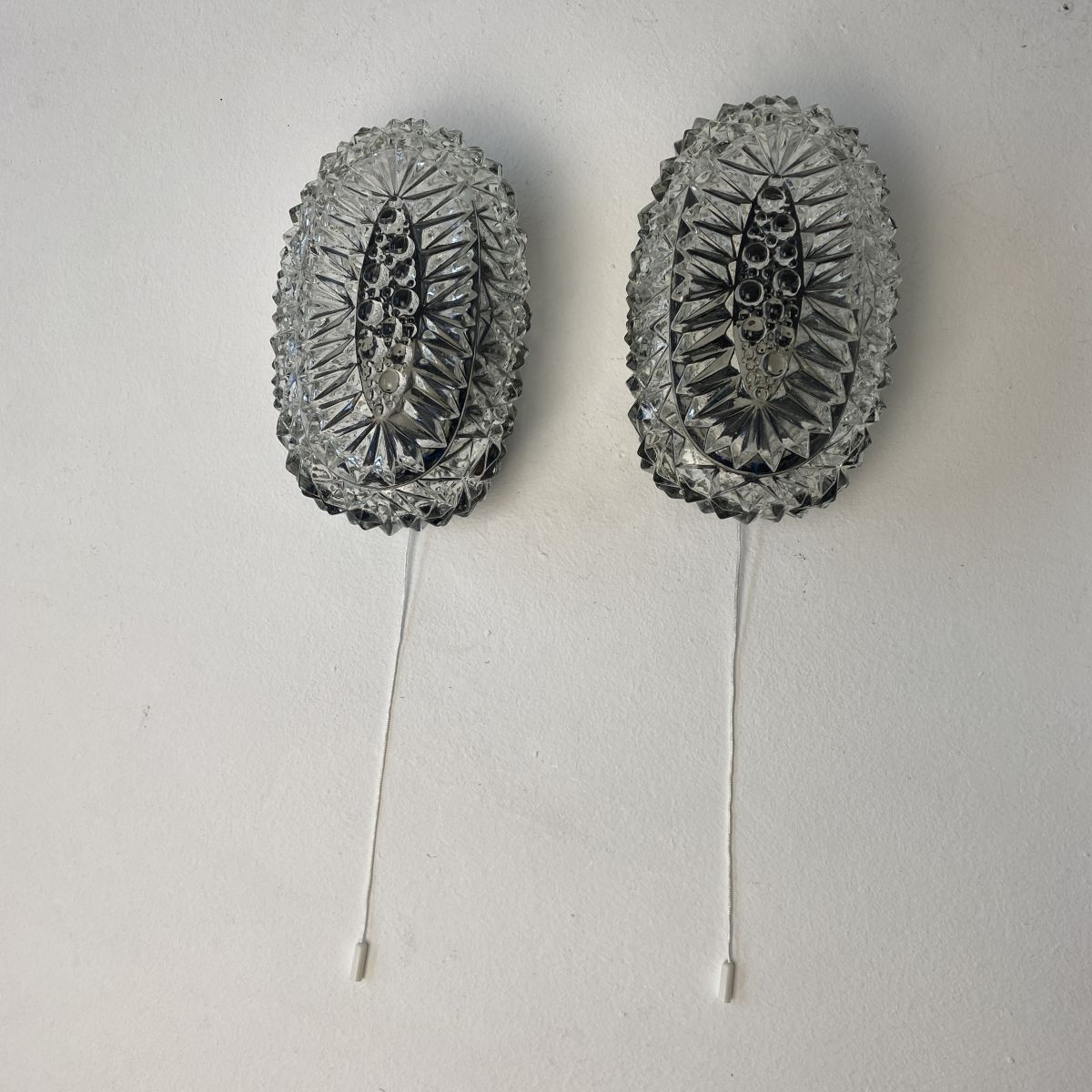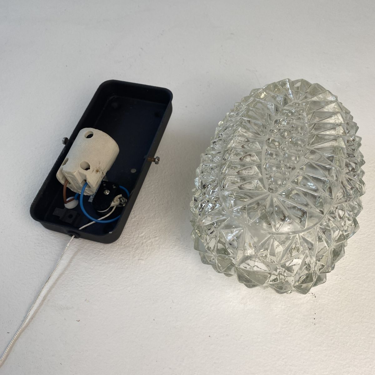 PAIRE D’ANCIENNES APPLIQUES OVALES EN VERRE MOULÉ vintage