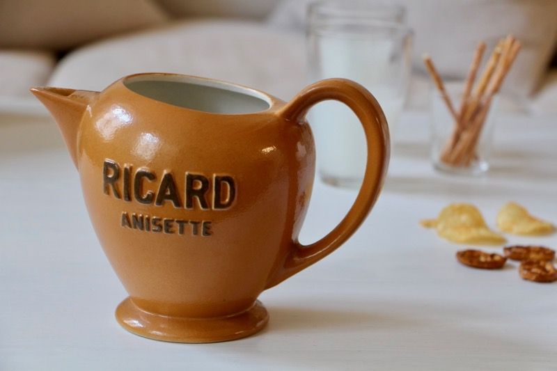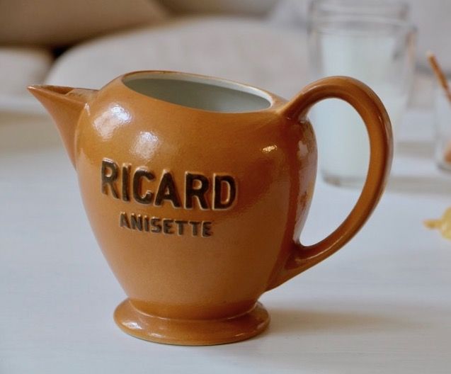 "C’est de l’imagination de Paul Ricard que le célèbre broc de la marque du même nom voit le jour en 1935. Ce natif de Marseille n’a alors que 26 ans et a mis au point sa fameuse recette de pastis trois ans auparavant. Ancien étudiant des Beaux-Arts, le créateur dessine lui-même les contours d’un broc qui va devenir emblématique de la marque d’apéritif. Une petite erreur de cuisson de la céramique dans les premiers essais donne au nouvel objet une couleur « pain grillé » dont le créateur va finalement raffoler." Source : Le Monde - Article 020/04/13 : “Un jour un objet le broc Ricard”
