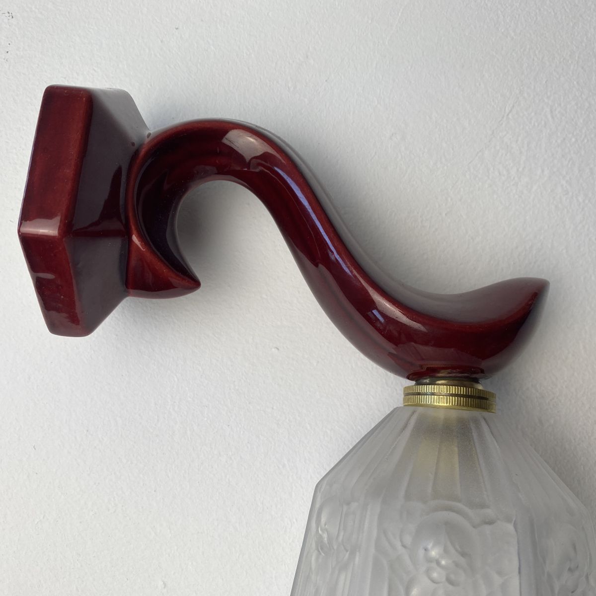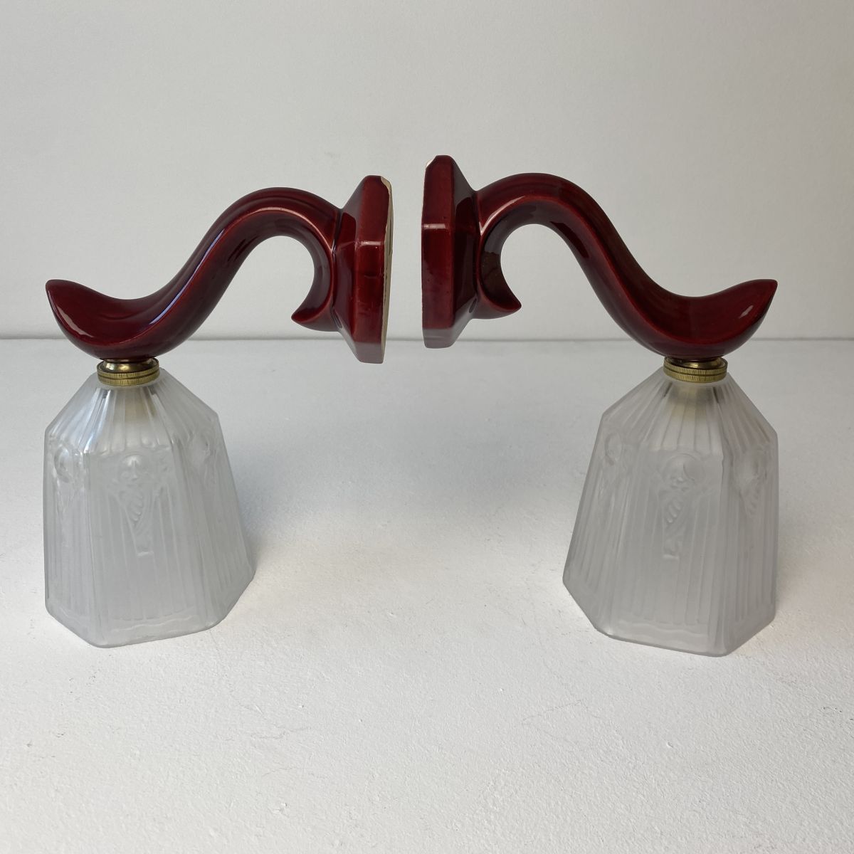 Lot 2 superbes appliques Art-déco en porcelaine et verre ciselé. En très bel état général. Superbe lumière.