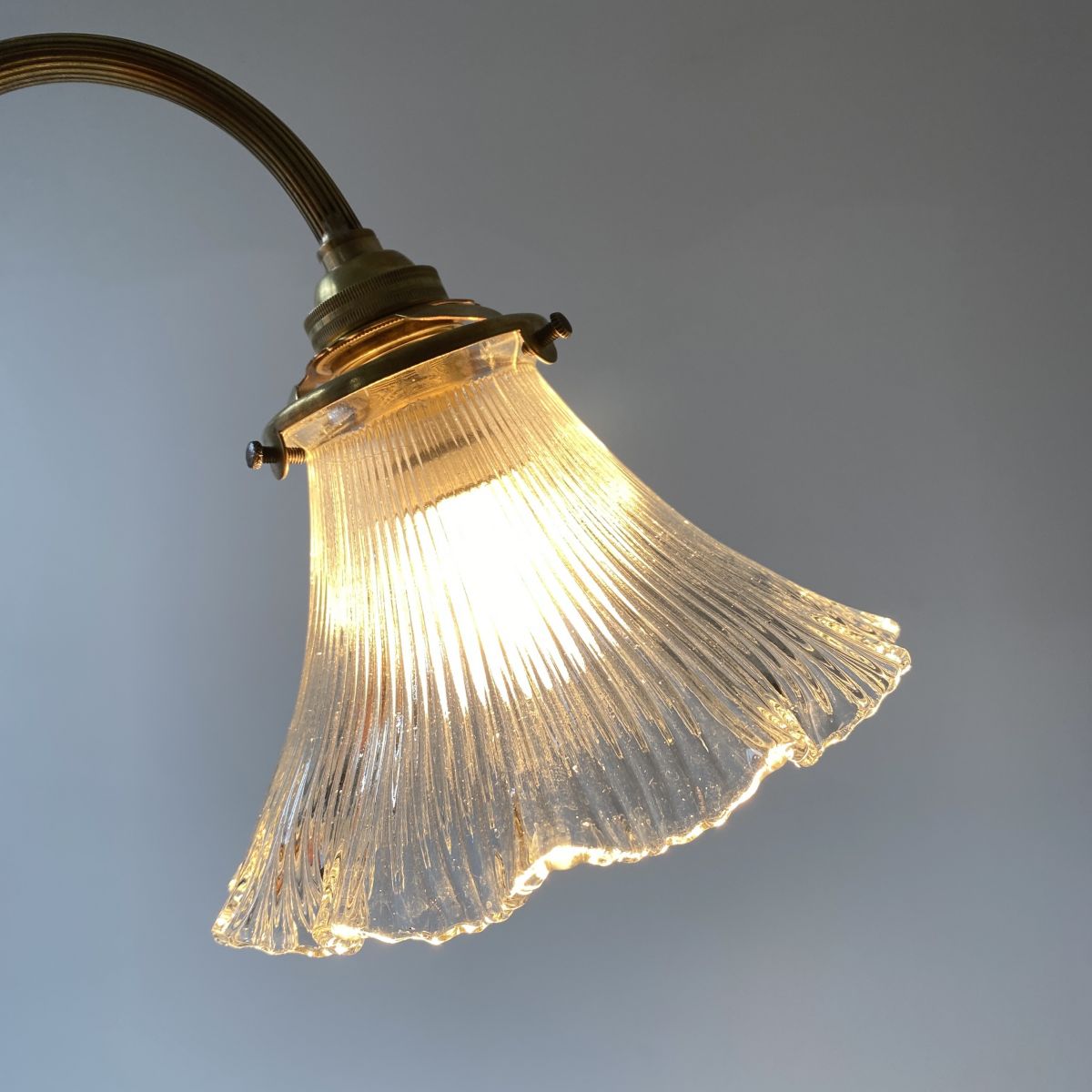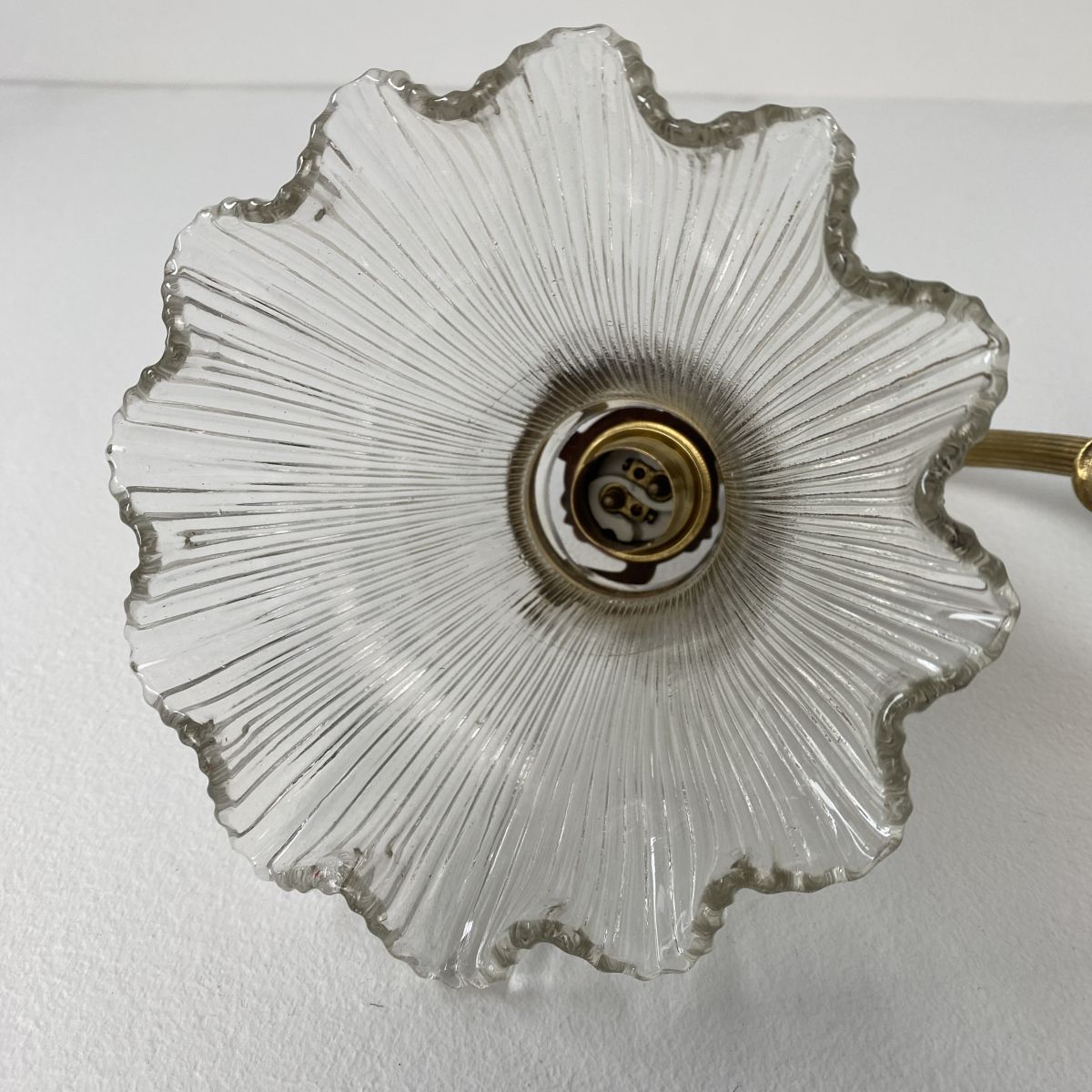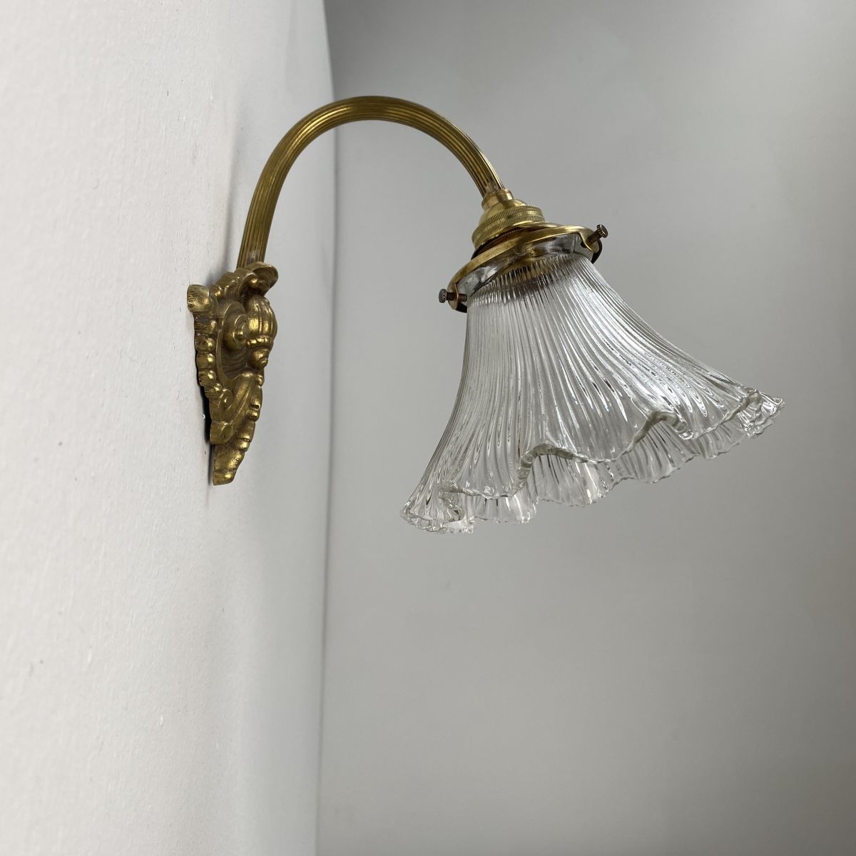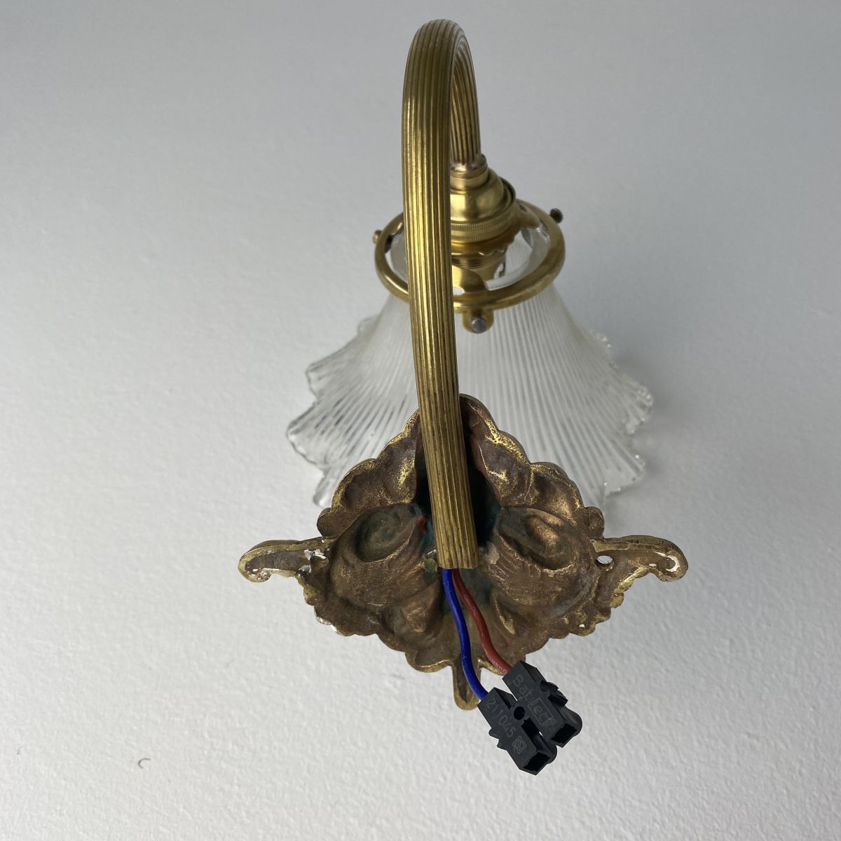 Ancienne applique vintage en bronze avec un abat-jour en verre prismatique. En très bel état.