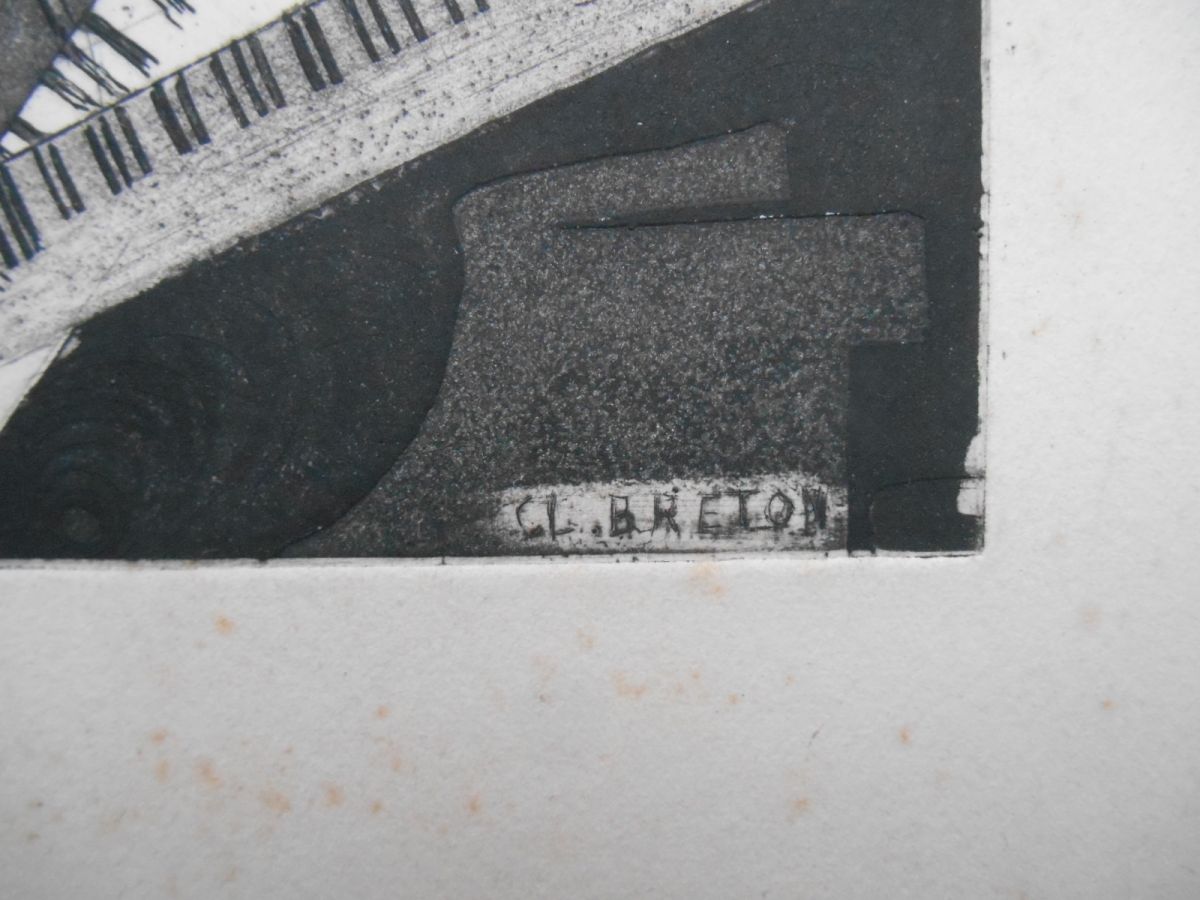 Gravure CUBISTE Signee Claude Breton 33cm x 25 cm cuvette 16cm x 20 cm Exemplaire d'Artiste