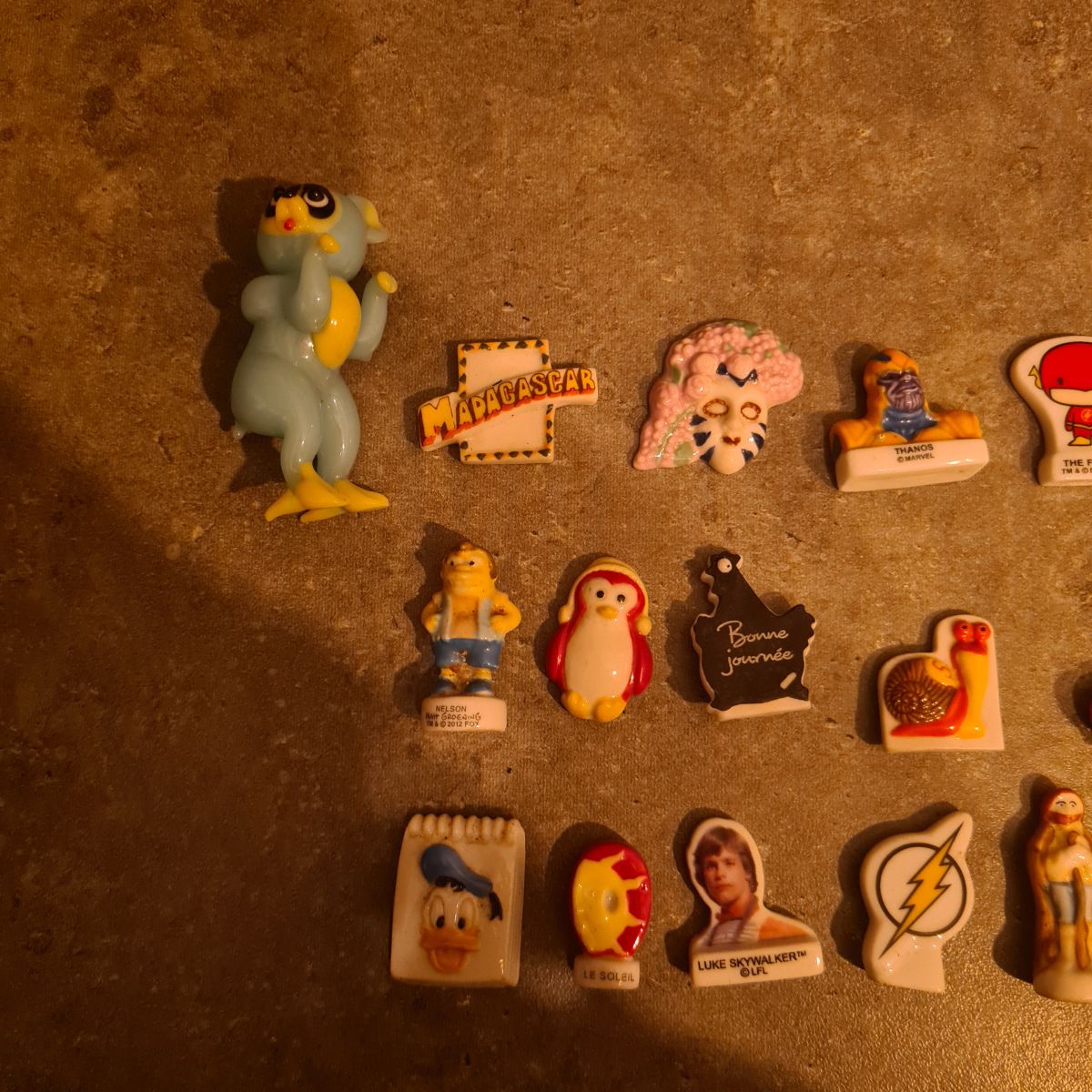Je vend ce lot de 25 fèves et une petite figurine en verre offerte