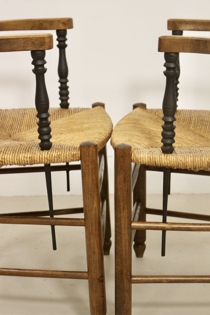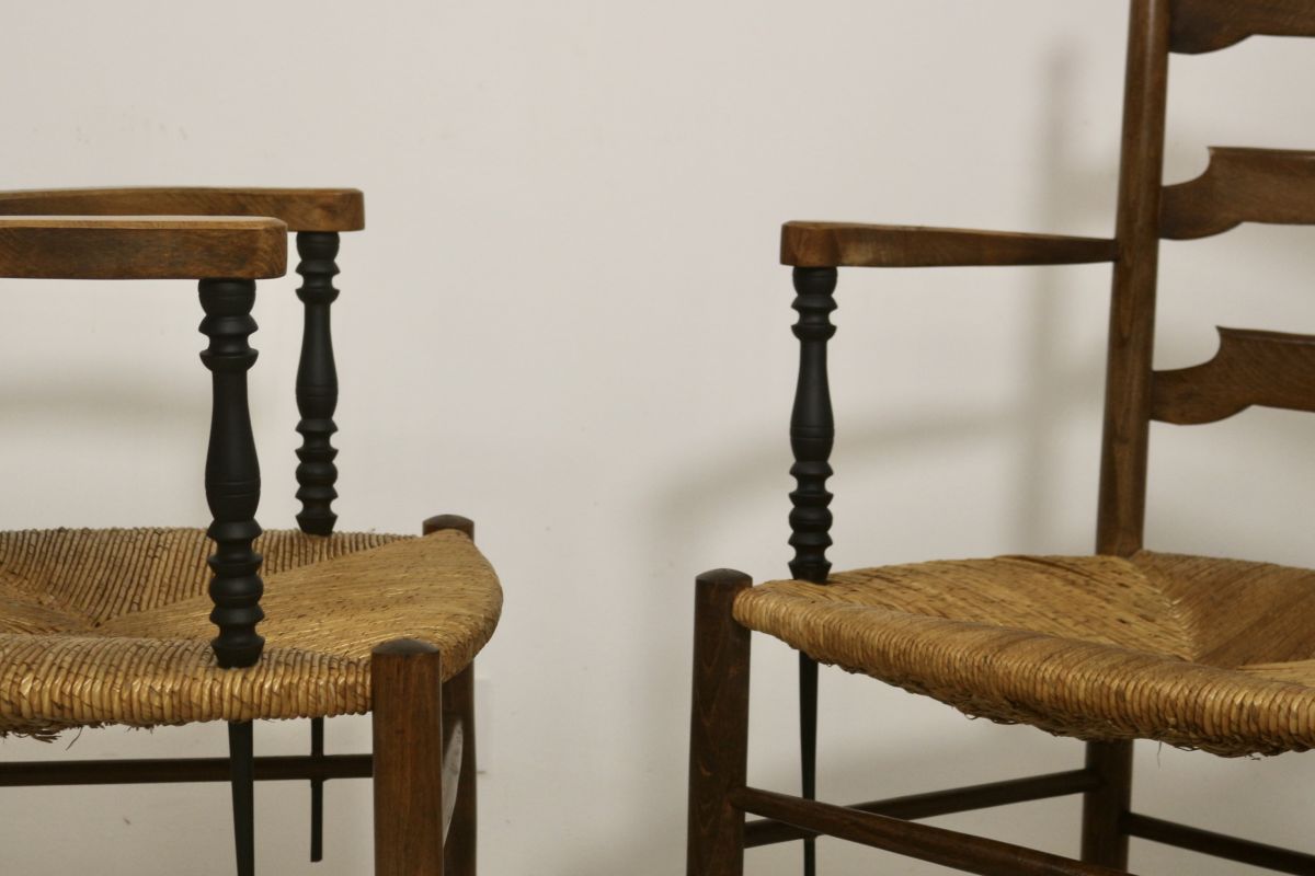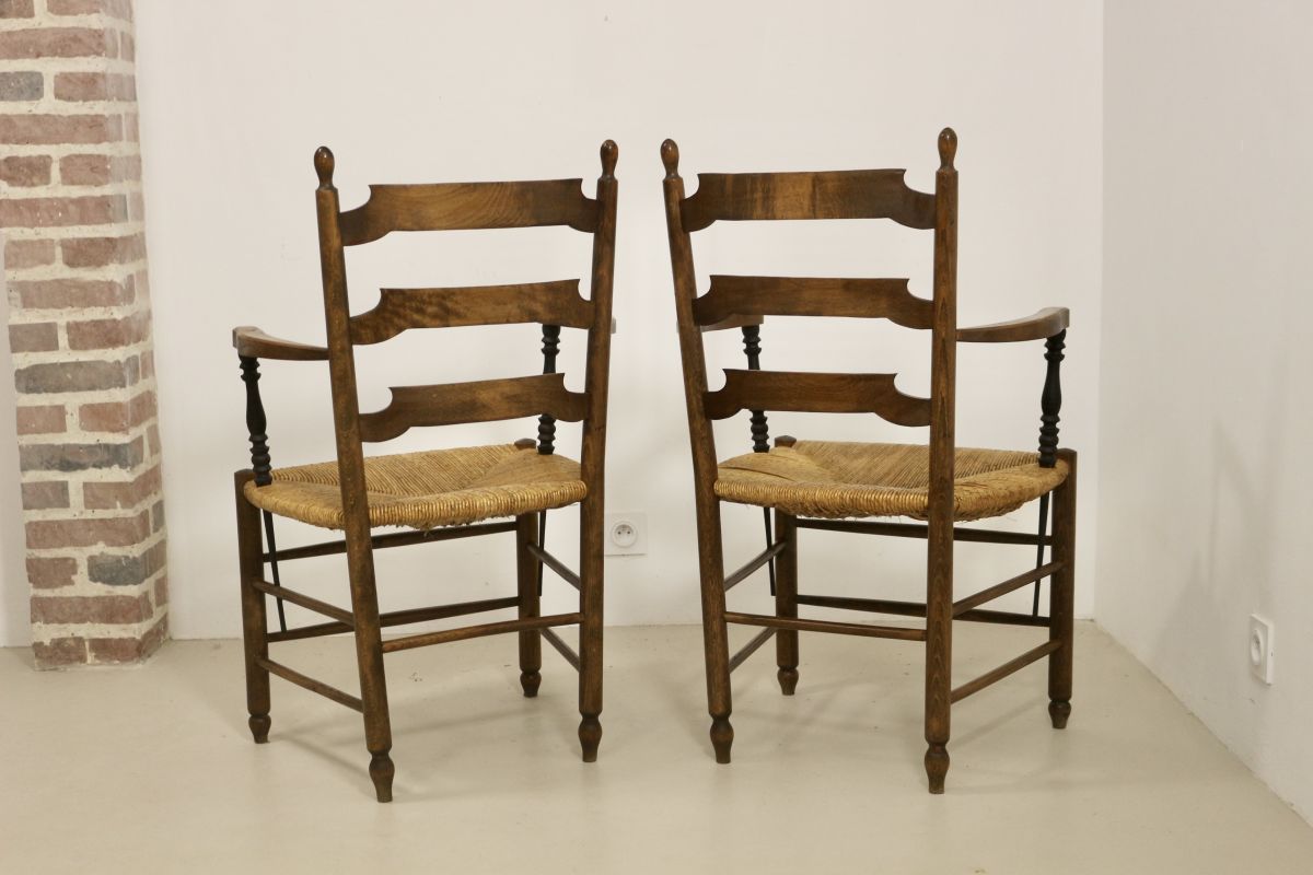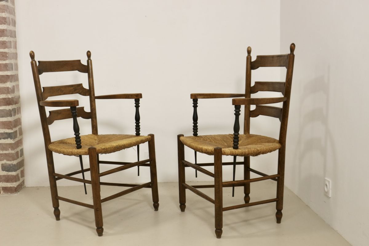 Paire de fauteuils en chêne massif et paille accoudoirs bico