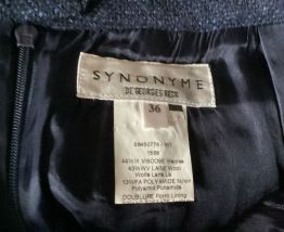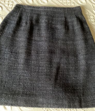 Jupe vintage courte chiné Marine et noir marque synonyme de Georges Rech taille 36 bon état dimension longueur 45 cm largeur tour de taille 32 cm