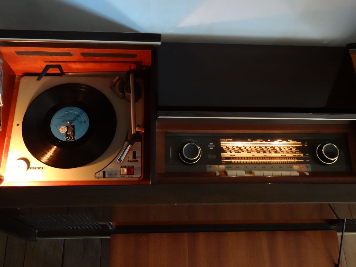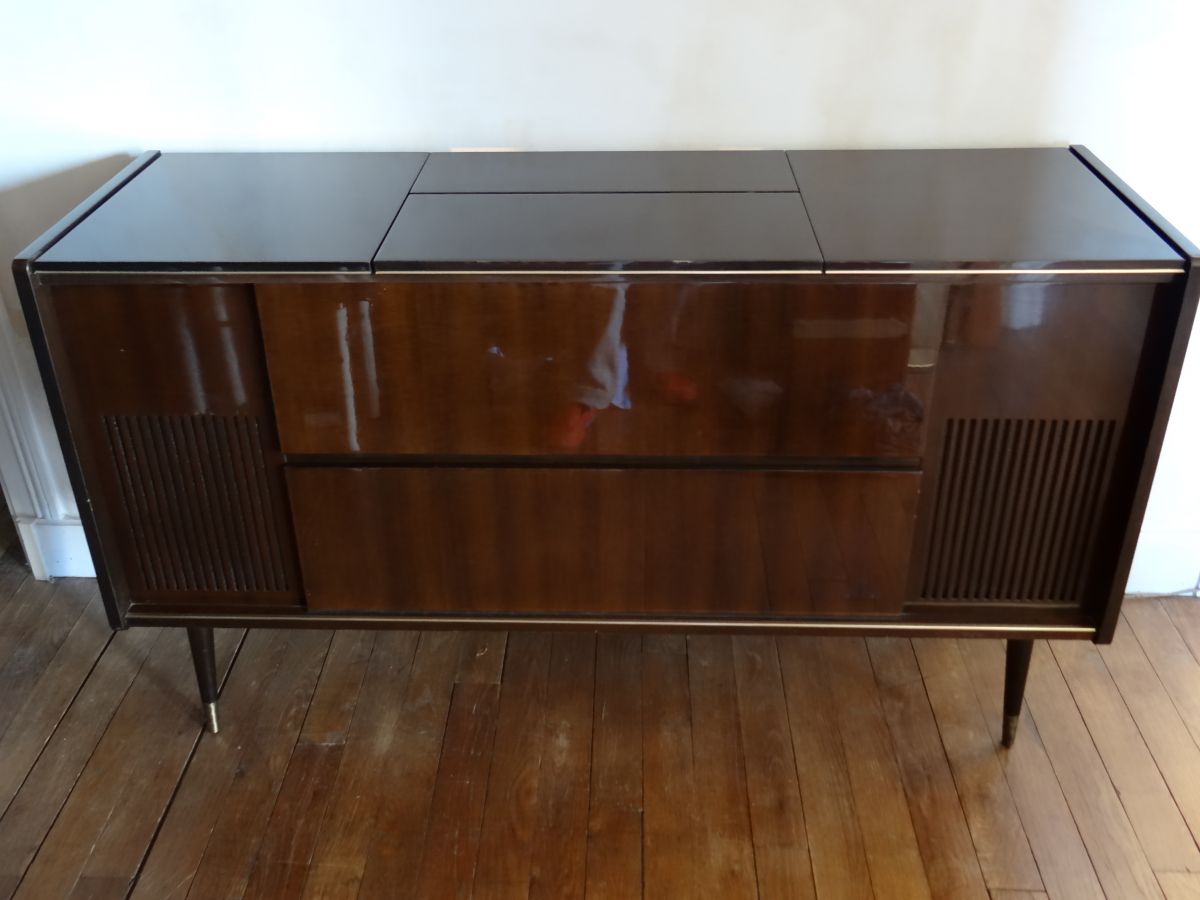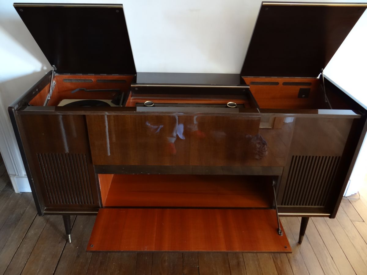 Bon état avec radio et platine tourne disques intégrés (le tourne disque est un peu capricieux mais fonctionne - sans doute des petits réglages à faire).