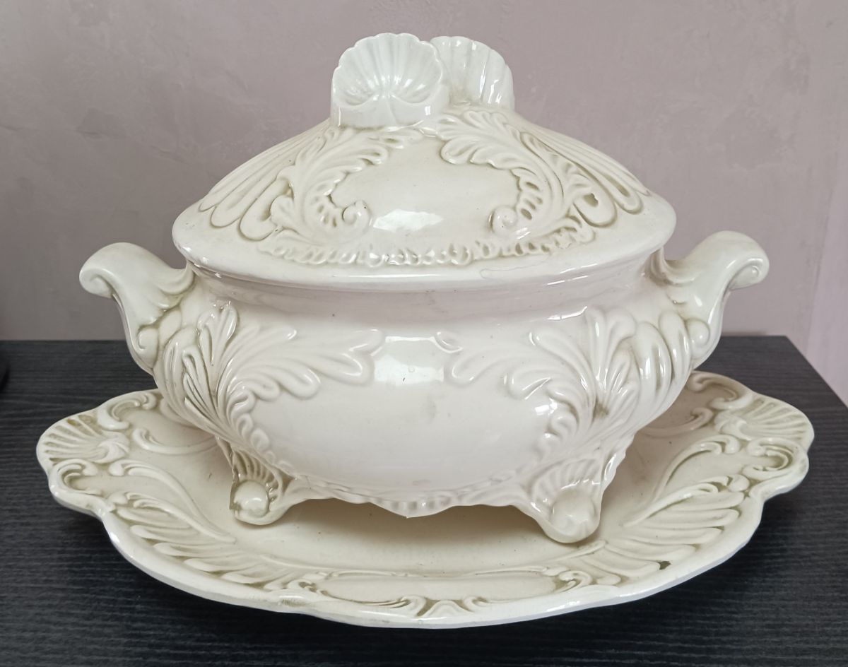 SOUPIERE ET SON PLAT EN FAIENCE ITALIENNE