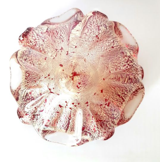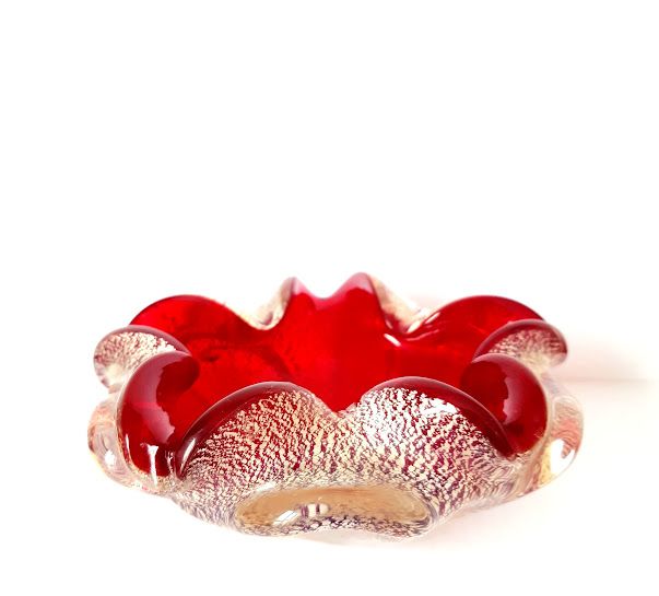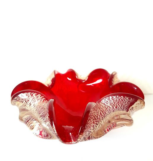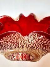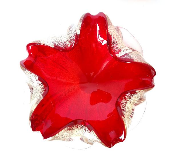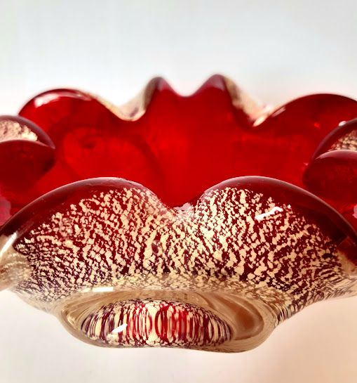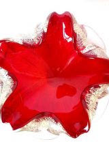 Verre de Murano rouge à inclusions de pailletons en feuille d'argent.