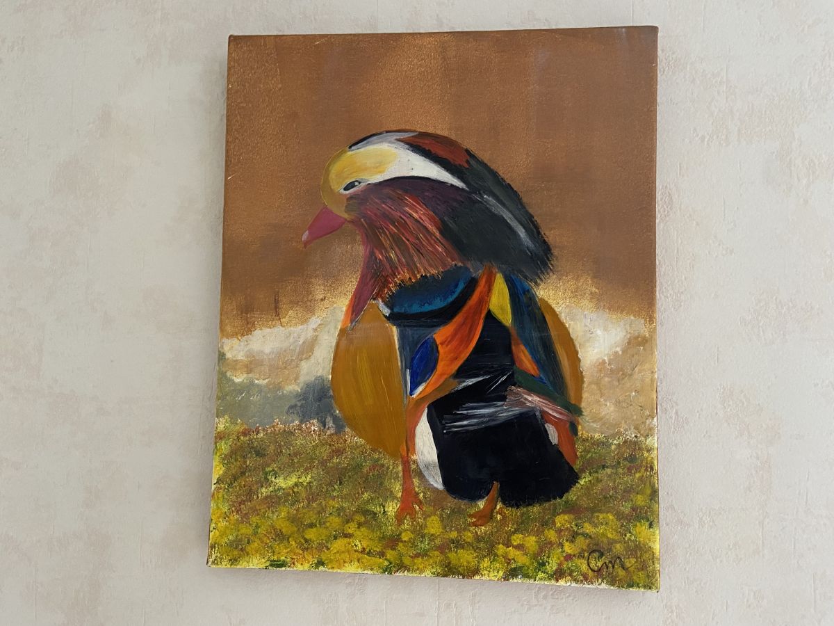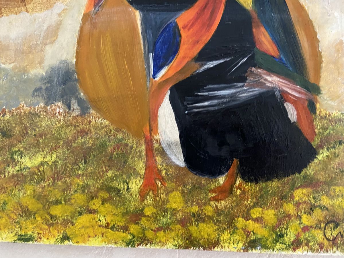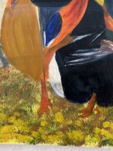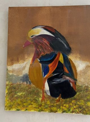Huile sur toile « Oiseau coloré »