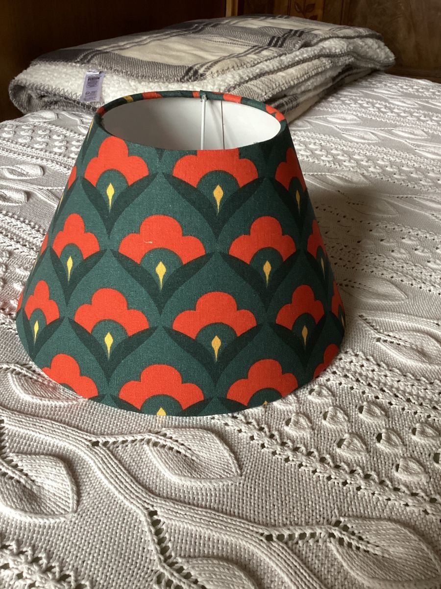Abat jour tissus imprimé vert et rouge Fait main dimensions 14 cm de hauteur 22 cm de diamètre neuf